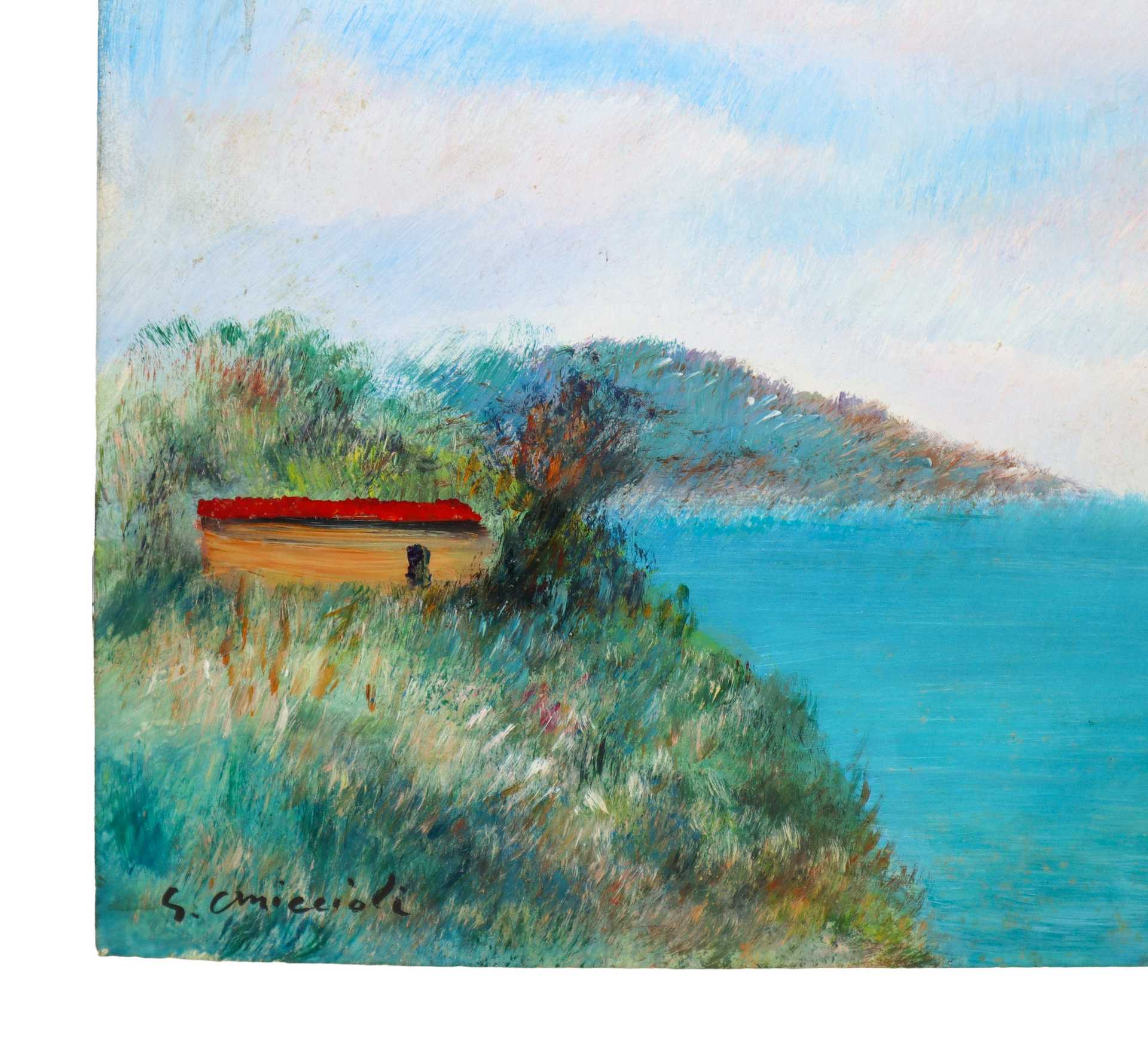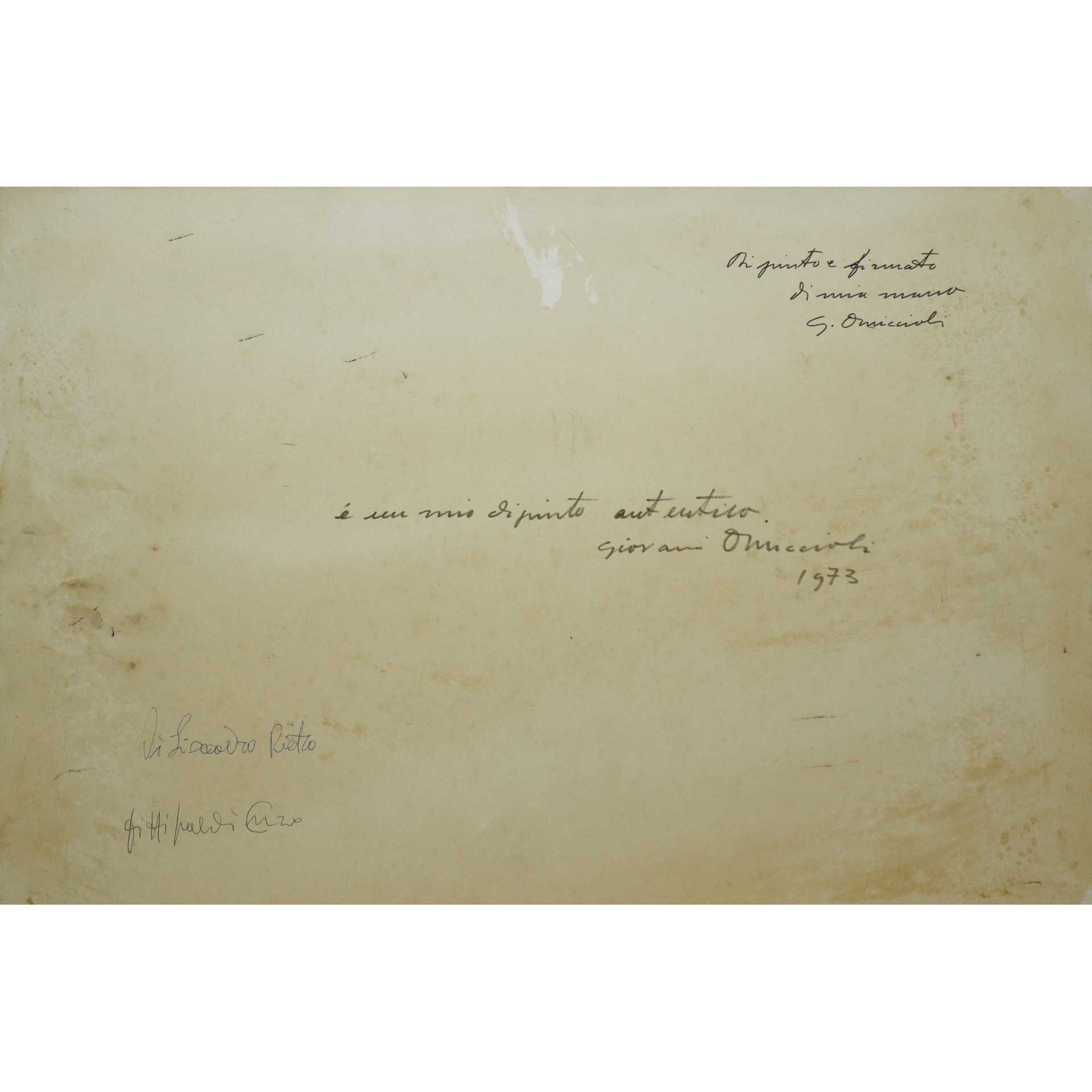 Giovanni Omiccioli (Roma 1901-1975) - Paesaggio, 1973 H cm 35x50 Olio su cartone Firmato in basso a sinistra. Al retro doppia firma e data