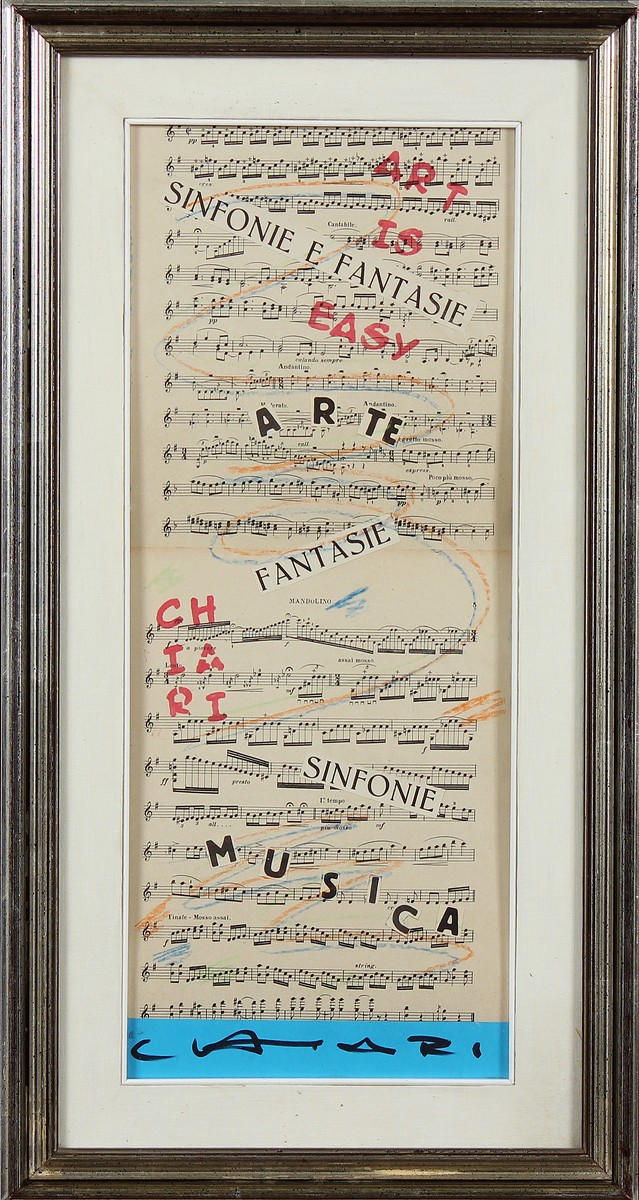 CHIARI GIUSEPPE (1926 - 2007) Sinfonie e fantasie. Tecnica mista su cartone. Cm 25,00 x 60,00. Firma in basso al centro. Autentica dell' artista su fotografia, come da documentazione allegata all' opera. Cornice presente