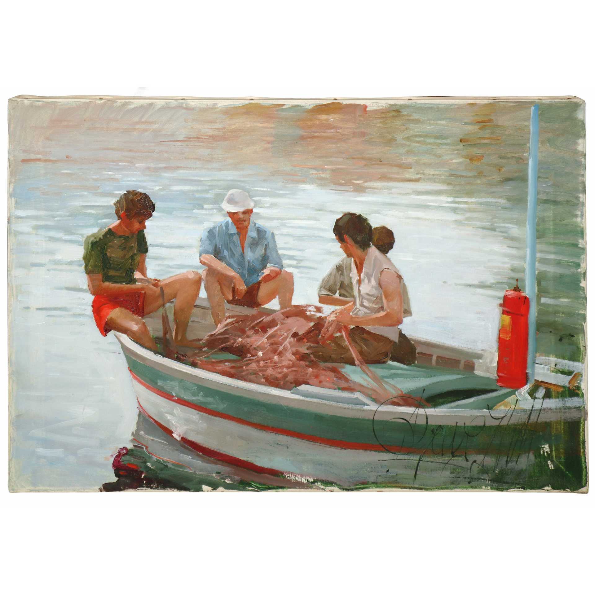 Pescatori cm 50x70 Olio su tela Firmato in basso a destra e sul retro firmato e titolato