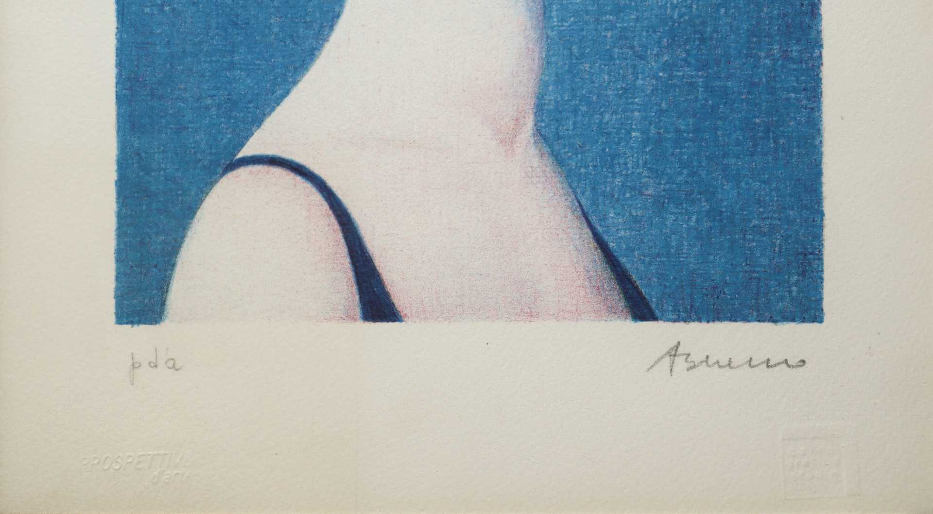 Antonio Bueno (berlino 1918-Firenze 1984) - Ragazza con cappello Foglio cm 25x35 , Opera cm 18x24 IN CORNICE 57X47 Litografia a 10 colori Prova d'autore 1/250.Firmato in basso a destra . Sul retro certificato Prospettive d'Arte
