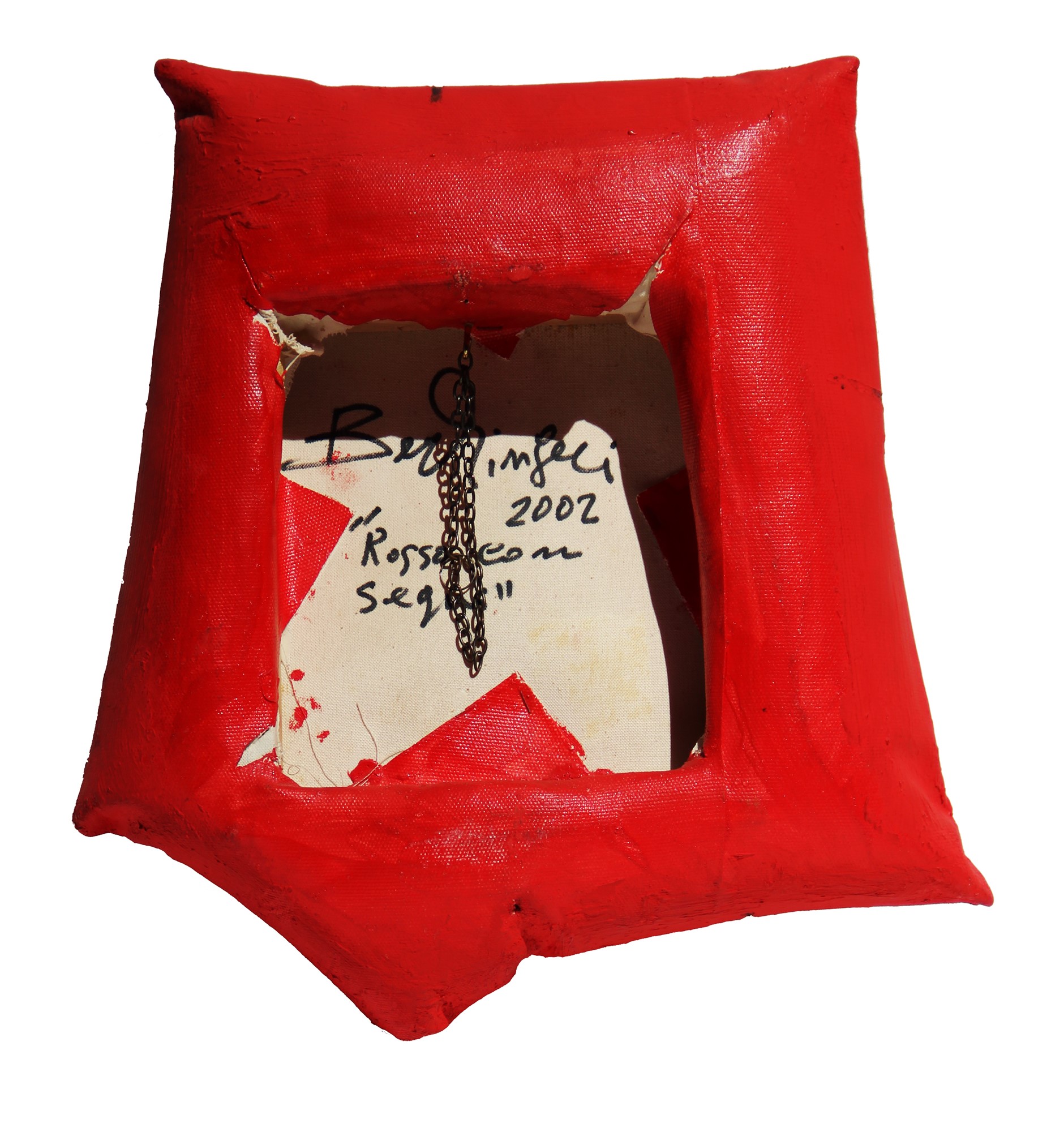 BERLINGERI Cesare, Rosso con segni, 2002, olio e pigmento su tela piegata, cm 37x42x15