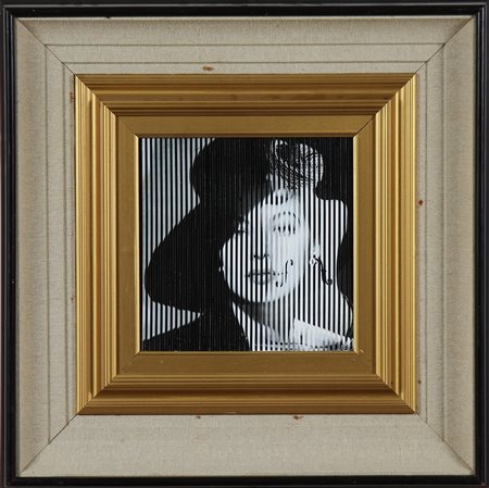 MALIPIERO (n. 1934) Eva Gardner, osmosi. 2012. Tecnica mista e collage su cartone. Cm 35,00 x 30,00. Al retro firma, anno e titolo. Autentica dell artista su fotografia. Cornice presente