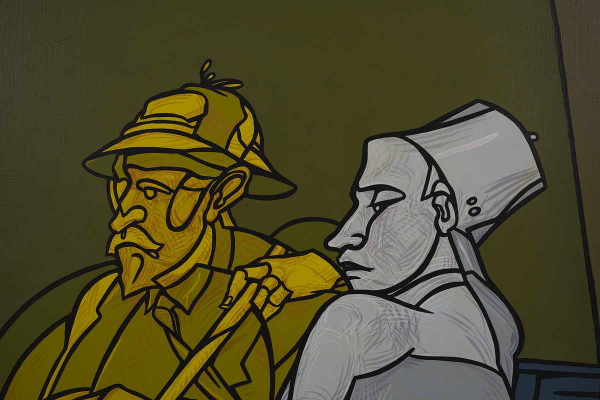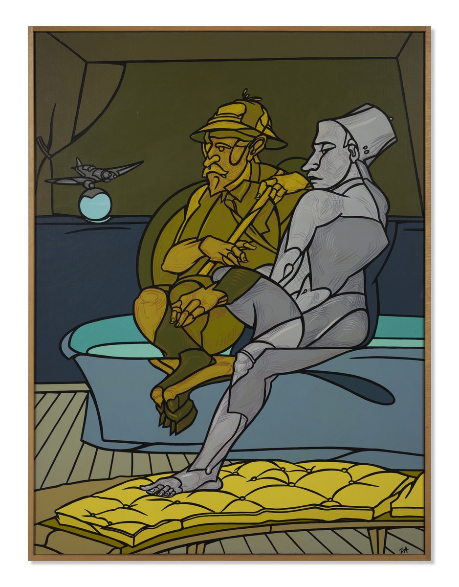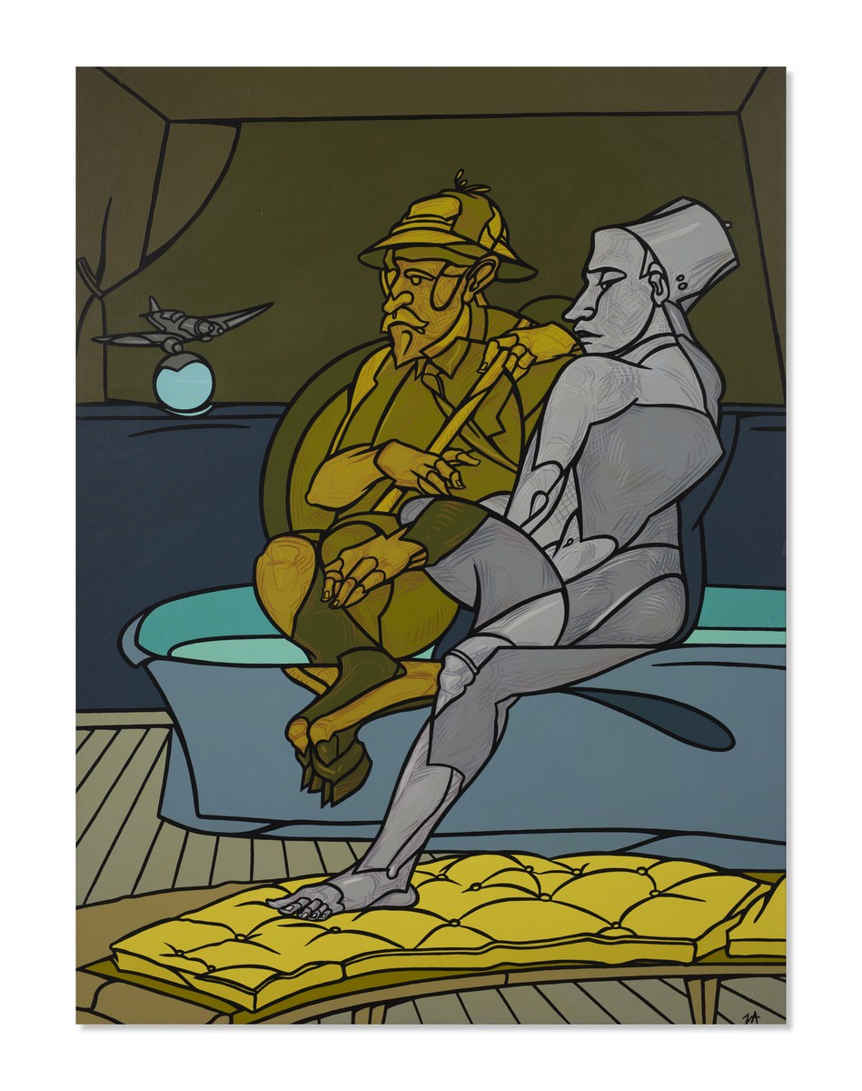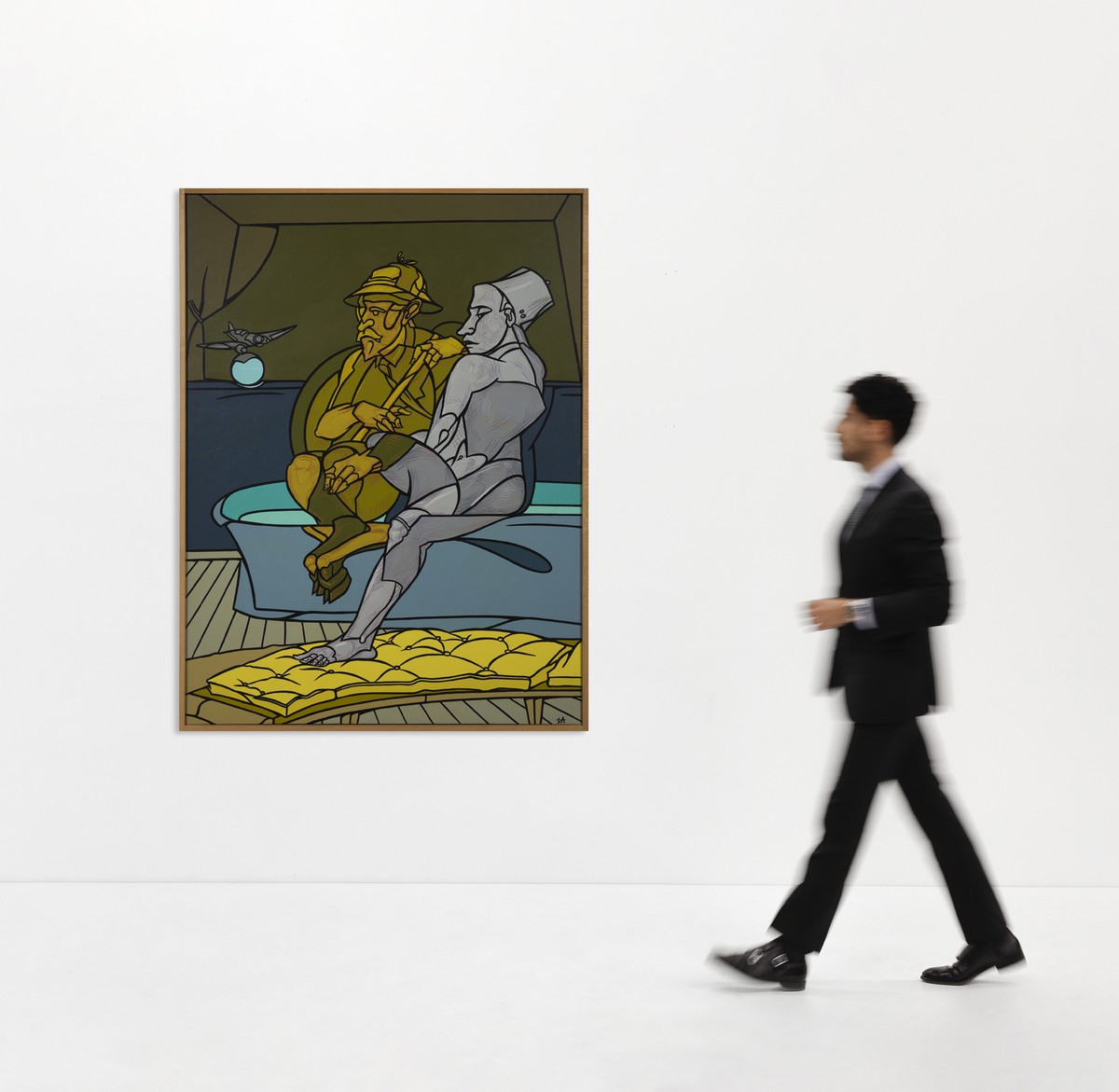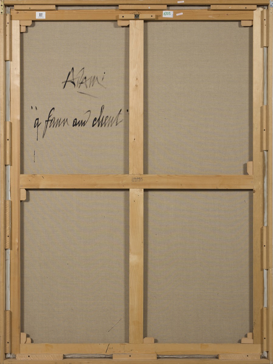 ADAMI VALERIO (n. 1935) A FAUN AND CLIENT, 1997. acrilico su tela. Cm 147,00 x 197,50. firma