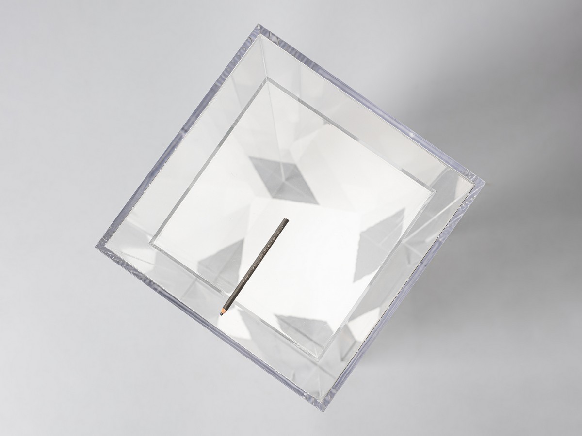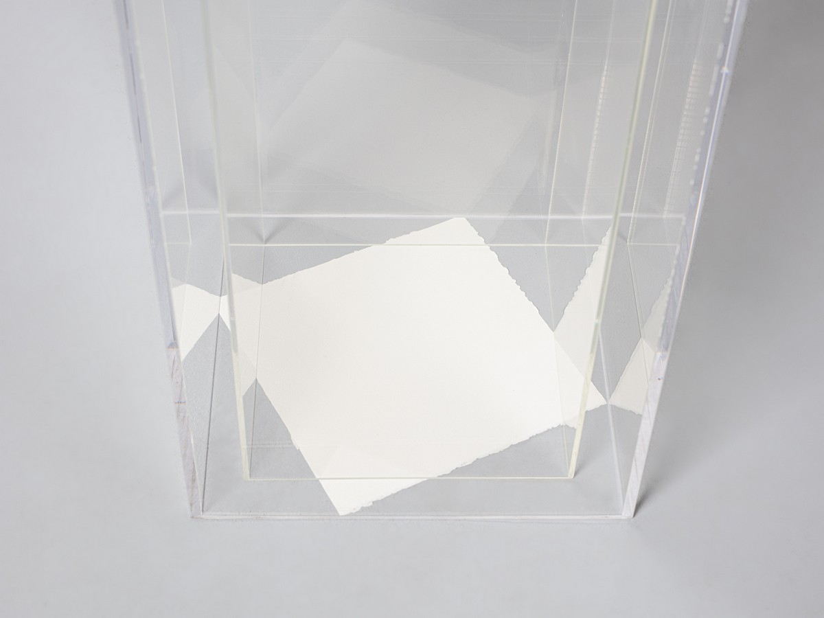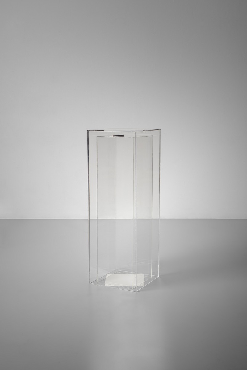 PAOLINI GIULIO (n. 1940) NIENTE E SUBITO, 2006. basi di plexiglas, foglio da disegno, matita nera. Cm 40,00 x 120,00 x 40,00. basi: 120 x 40 x 40 cm e 116 x 32 x 32 cm