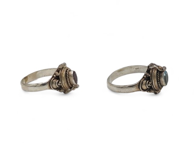 Precedente Lotto 59 Successivo Guidoriccio Casa d'Aste - Via ferraris 128, 52100 AREZZO BOUTIQUE VINTAGE Sessione unica mercoledì 26 giugno 2024 ore 15:00 (UTC +01:00) 2 anelli simili in argento 925 2 anelli simili in argento 925 Apribili Peso 3 gr Misura 15