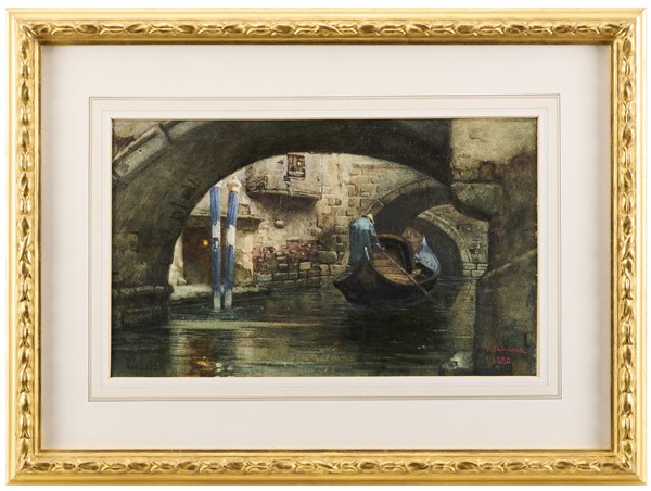 Vincenzo Cabianca "La gondola" 1880 acquerello su carta (cm 22,5x37) firmato e d