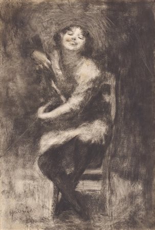 Attilio Andreoli "La giovane musicista" tecnica mista su carta (cm 47x32) firma