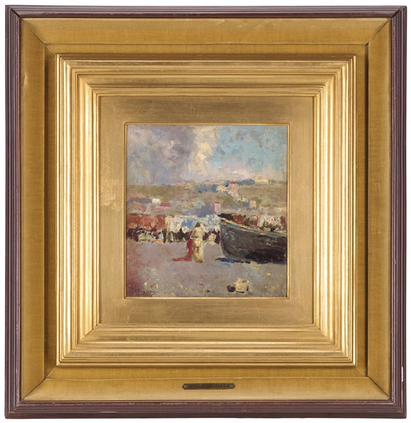 Attilio Pratella "Marina" olio su tela (cm 19x18) firmato in basso a sinistra i