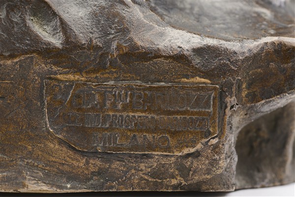 in basso a sinistra timbro della fonderia "Barigozzi, Milano" (difetti)