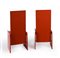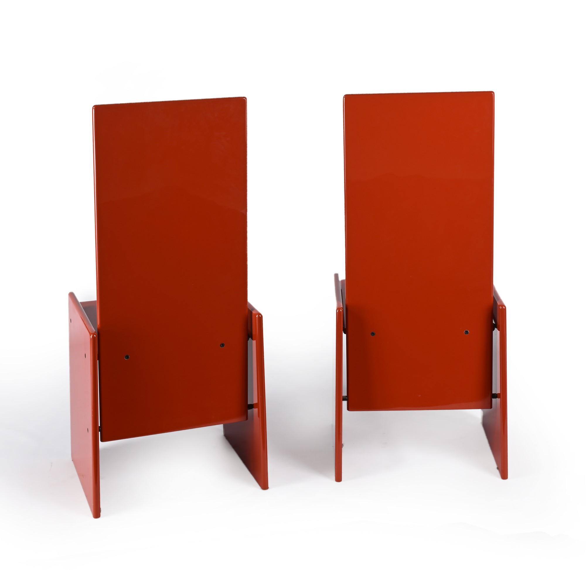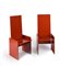 Coppia di sedie Kazuki, prod. Simon International Gavina 1969 cm 107x46x47 legno multistrato laccato lucido rosso. Entrambe recano sotto la base l'etichetta del produttore