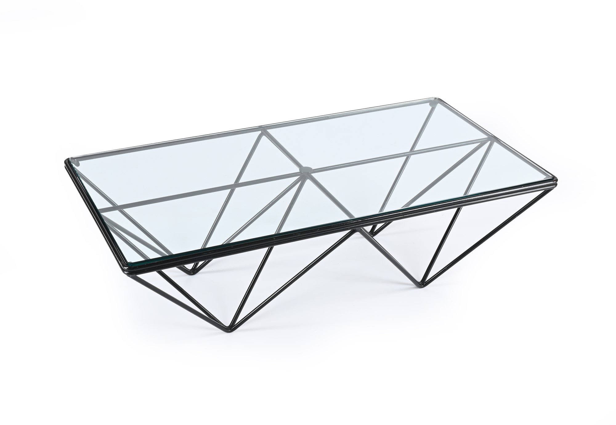 Tavolo basso modello Alanda 1970 cm h30x100x50 Struttura in metallo verniciato a piramidi capovolte e piano in vetro temperato. Produzione B&B