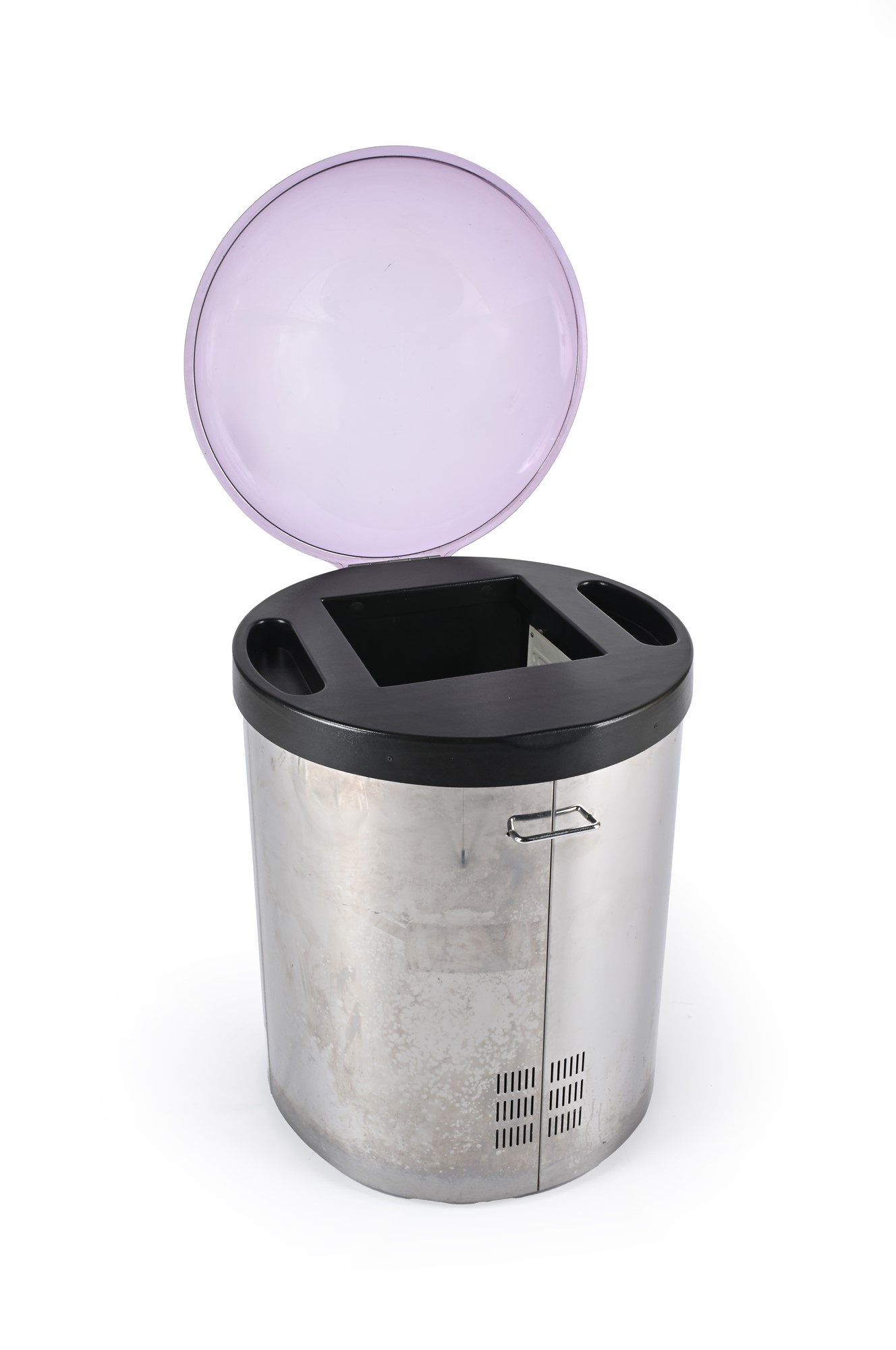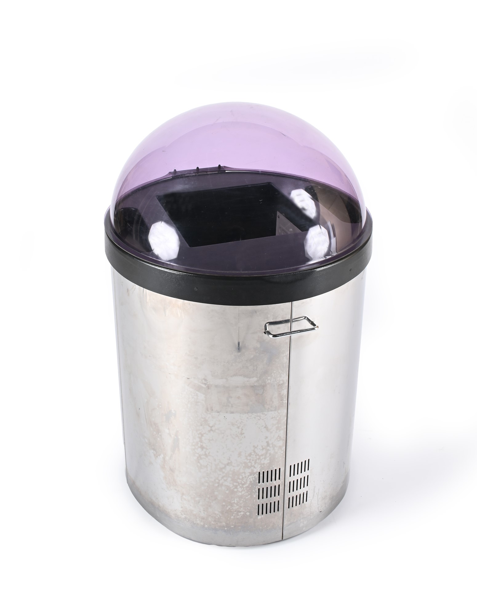 Frigo bar Anni '70 cm 95x60 con scomparto refrigerante, scomparto per cubetti di ghiaccio e illuminazione. Struttura in acciaio cromato, resina Abs, cupola in plexiglass e rotelle.