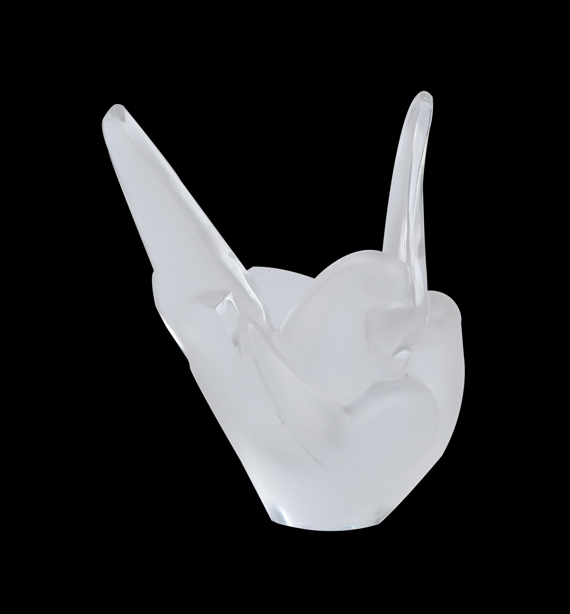 Vaso "Sylvie" in cristallo satinato, Francia, XX secolo cm 21x17x10 caratterizzato da due colombi. Firmato sotto la base "Lalique France"