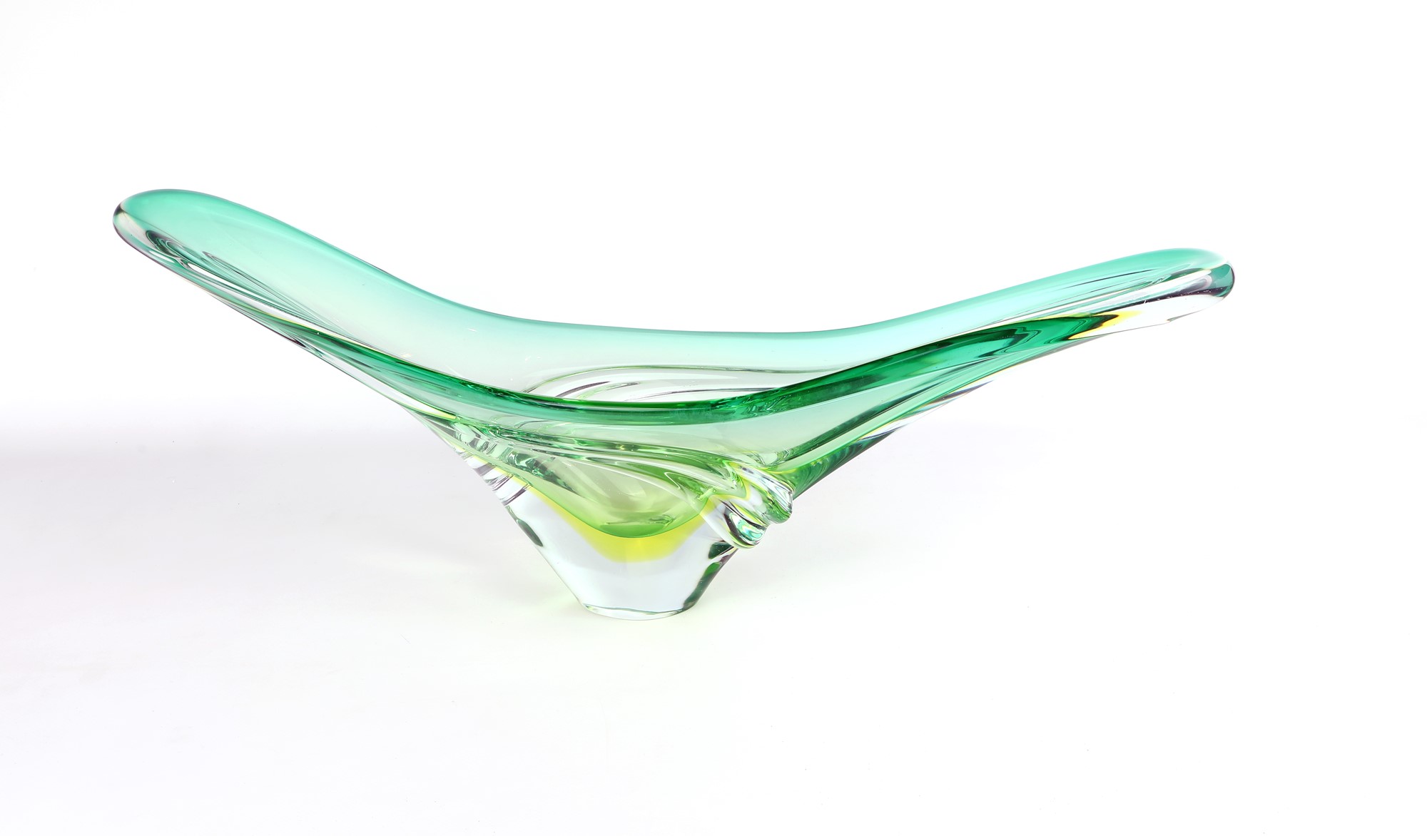Centrotavola in vetro sommerso, attribuibile a Flavio Poli per Seguso Anni '70 cm h 26x67x17