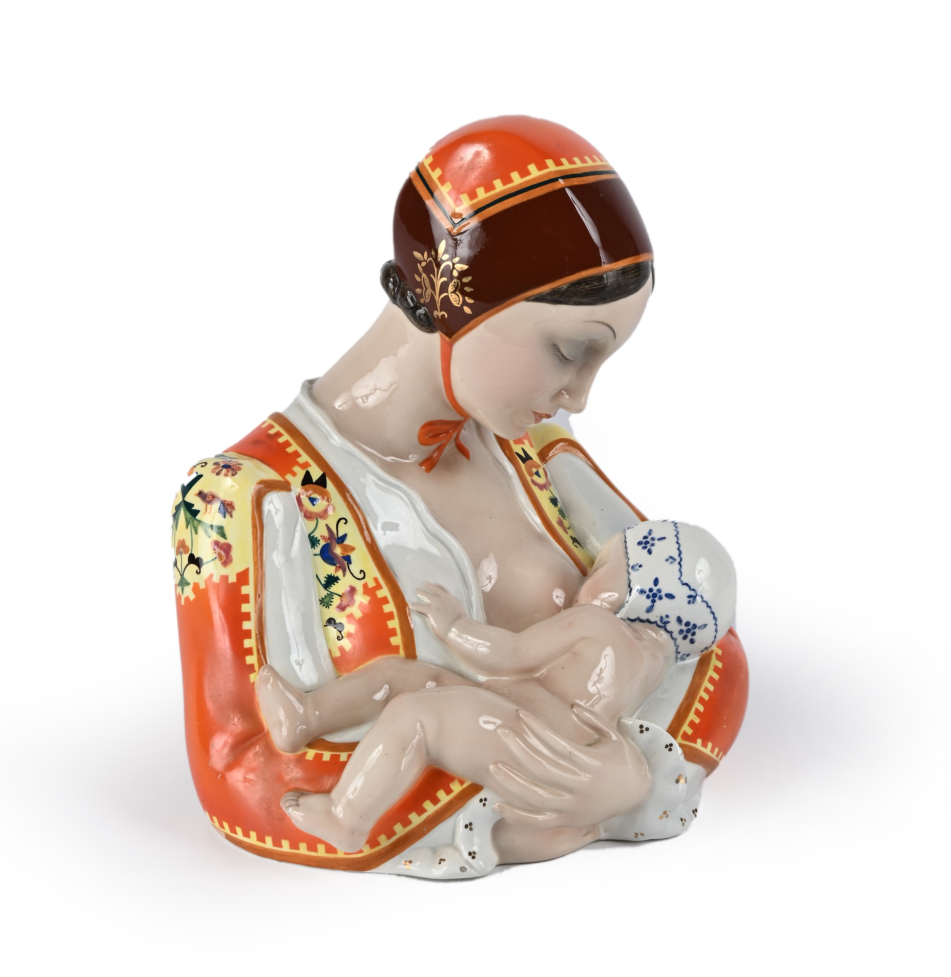 C.I.A. Manna, Torino - Maternità Ceramica cm h 25x20x15 Gruppo in terracotta maiolicata decorata in policromia. Sotto la base: C.I.A. Manna Torino Made in Italy