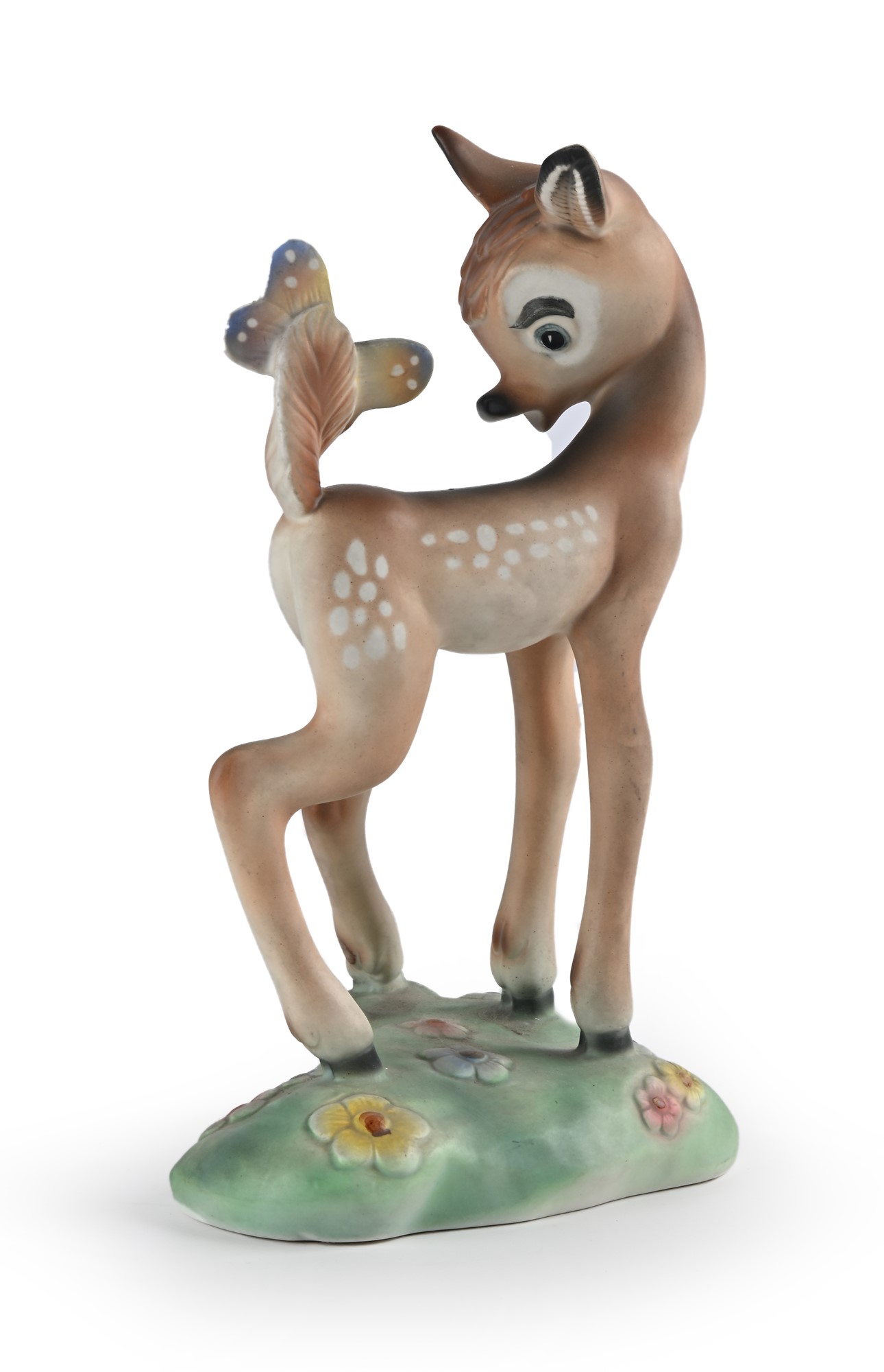 Bambi - Walt Disney, mod. 1189 Anni Quaranta ceramica a colaggio policroma, opaca cm 25,5x16x12 Firmato sotto la base: Lenci Made in Italy e bollino in carta con numero di modello 1189 A. Panzetta, Le ceramiche Lenci. Catalogo dell'Archivio storico 1928-1964, Allemandi, Torino 1992, cat. n. 1189, p. 320