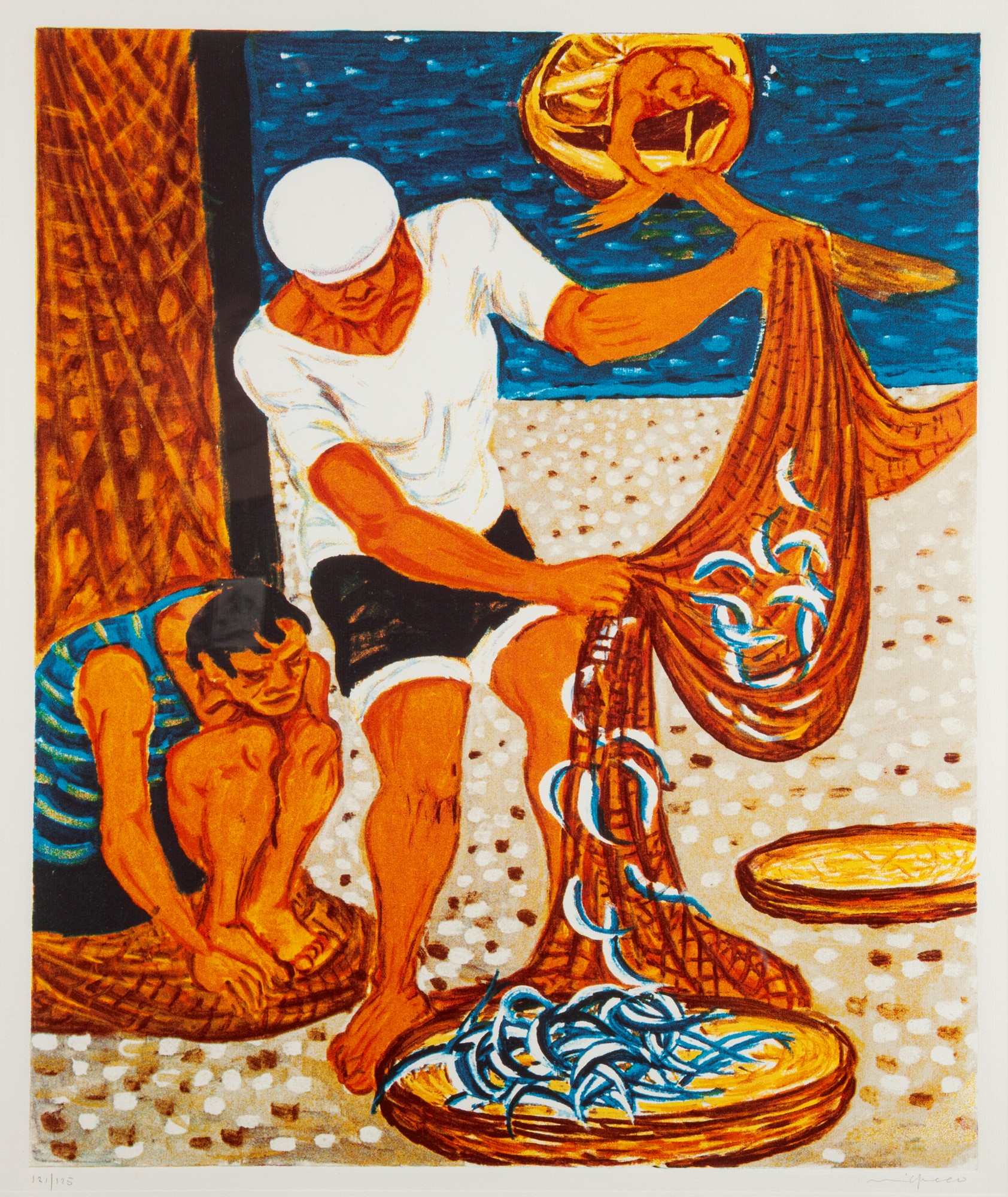 Giuseppe Migneco (Messina 1903-Milano 1997) Pescatori Litografia cm 76x59 -...