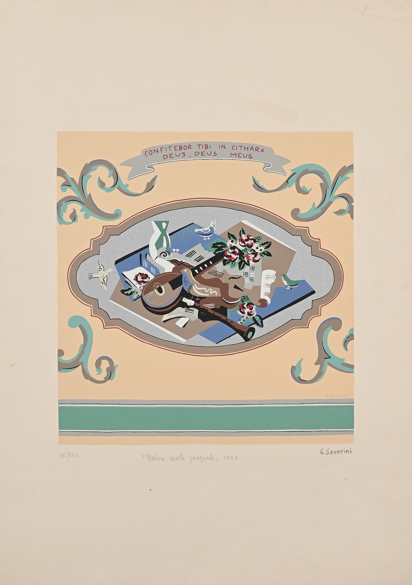 1) Natura morta pasquale 1928/1983, titolo e numerazione 35/250. Al verso timbro dello stampatore e firma di Gina Severini Franchina