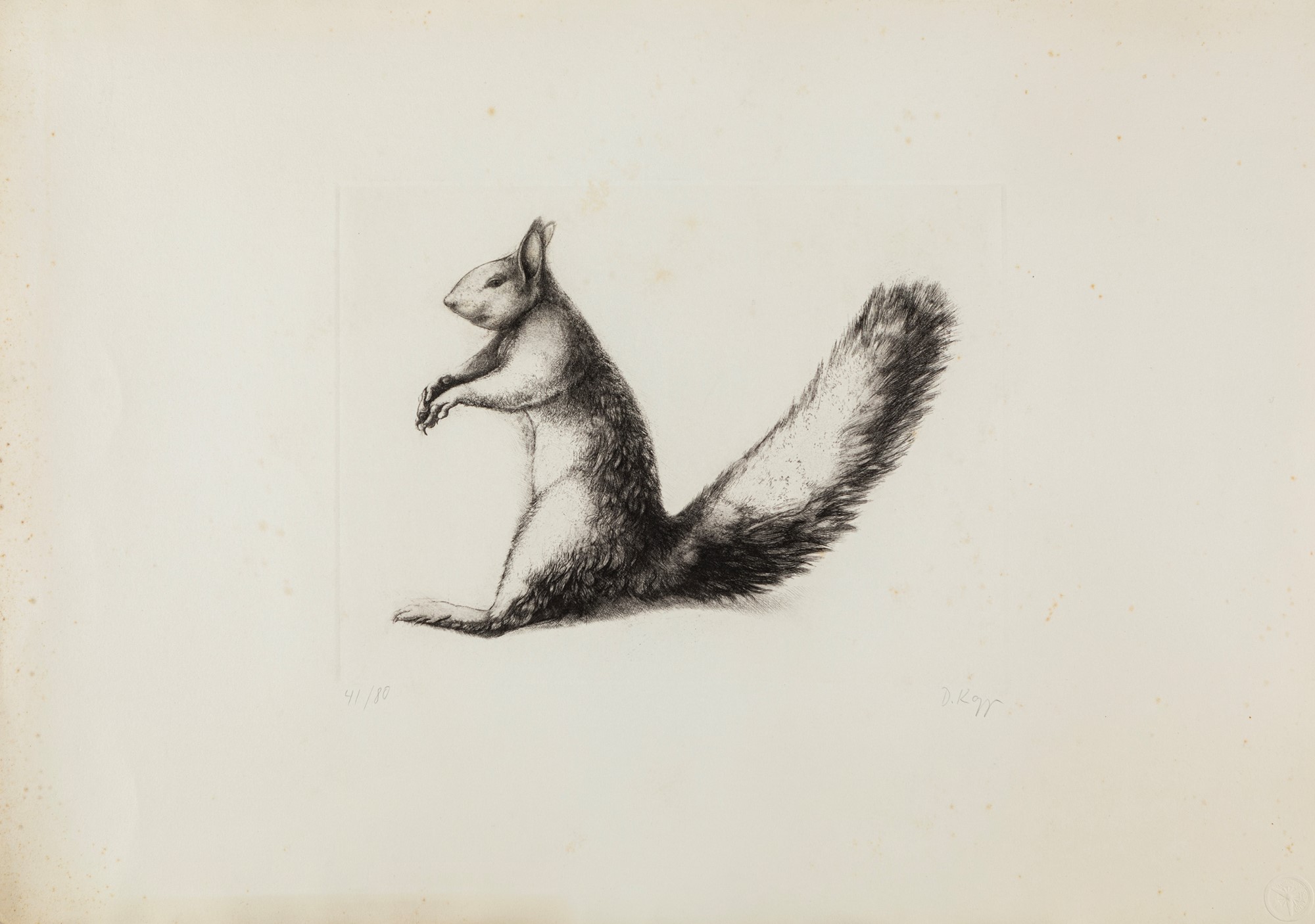 Scoiattolo 1977 Acquaforte cm 50x70 Firma e numerazione "D. Kopp 41/80". Timbro a secco ed etichetta dello stampatore Il Torchio Romano