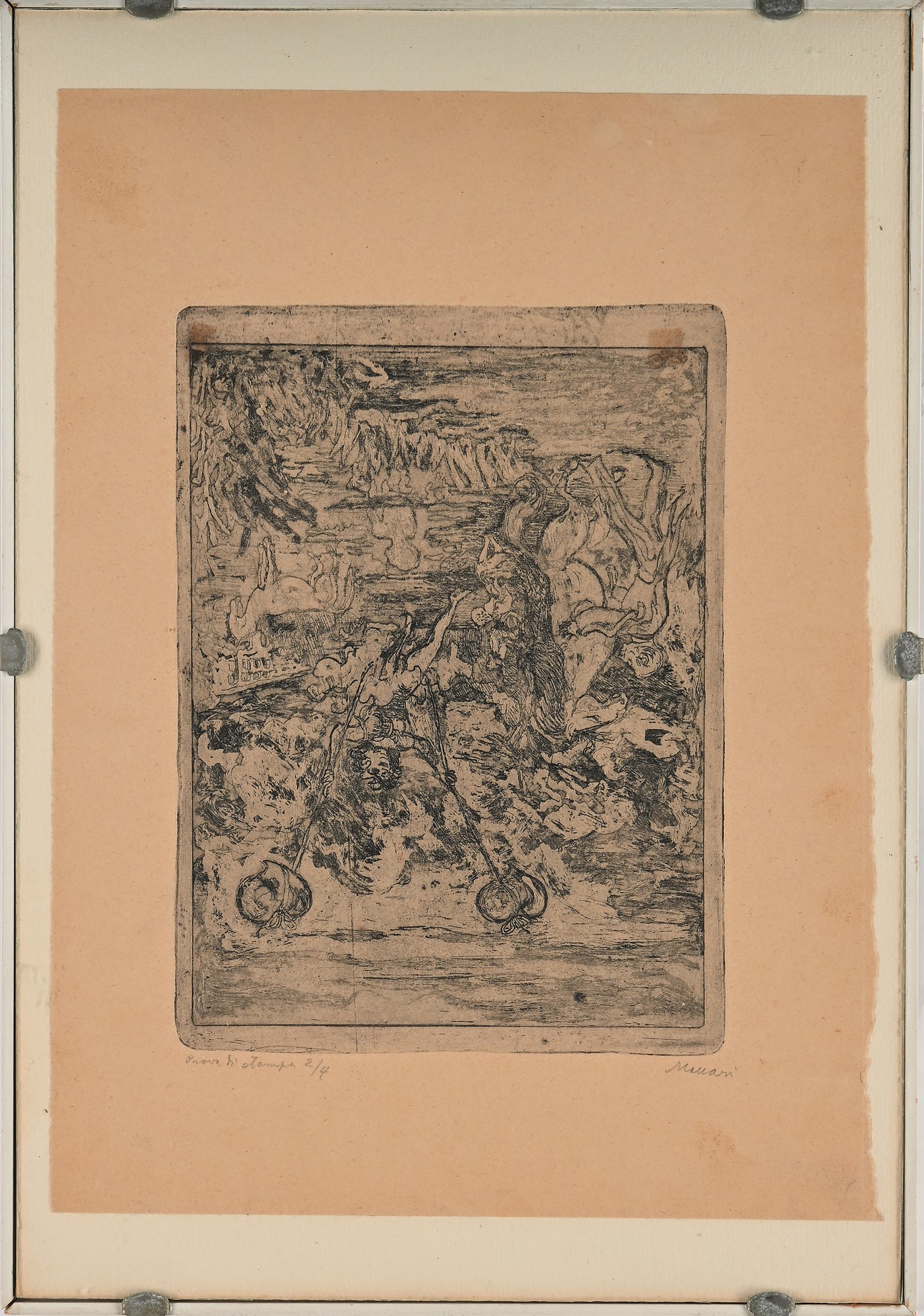 4) Il circo, Acquaforte, cm 35x25 - in cornice cm 41x28. Firma e numerazione "Maccari, prova di stampa 2/4".