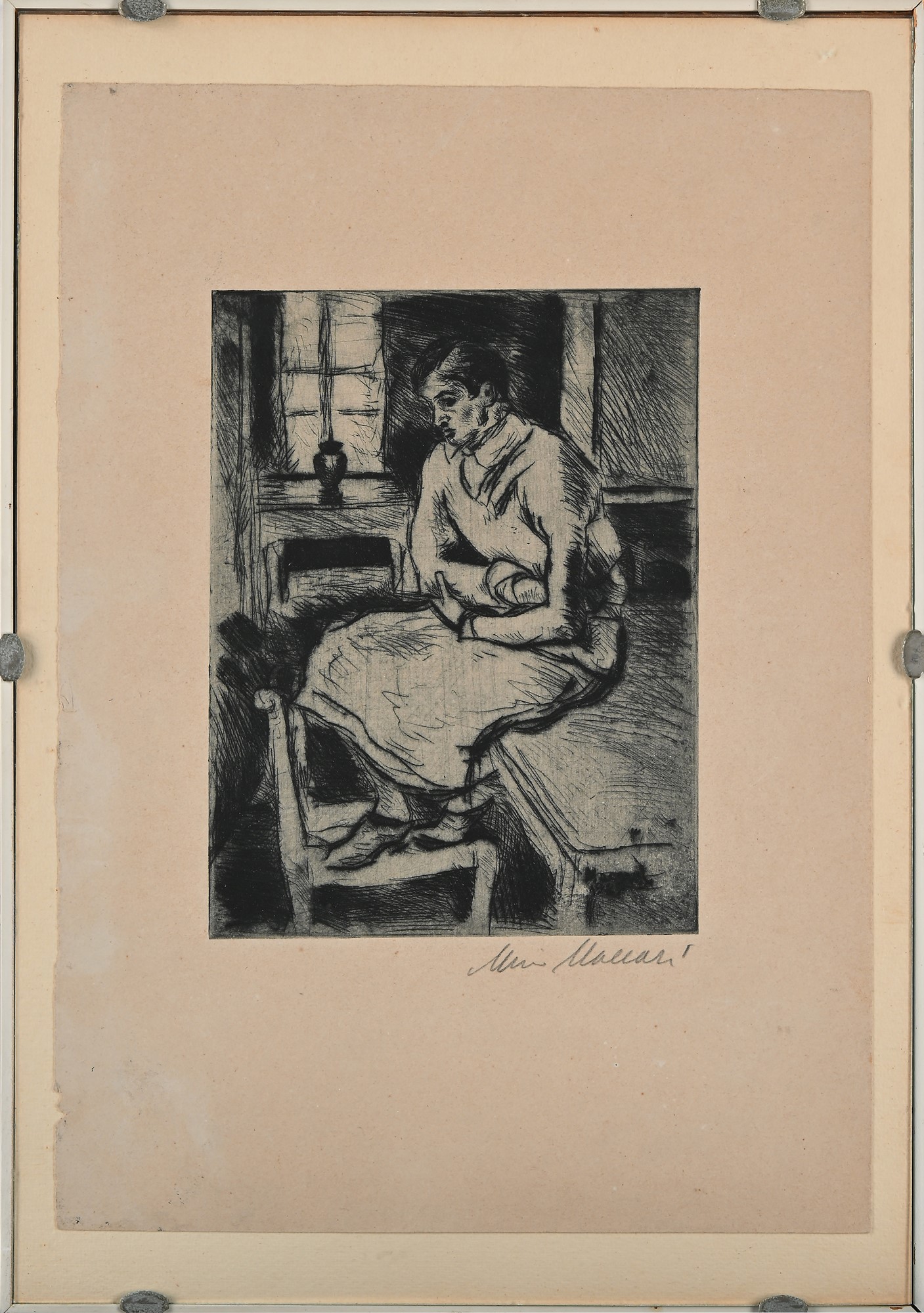 3) Figura di uomo seduto, Acquaforte, cm 35x25 - in cornice cm 41x28. Firma "Mino Maccari".
