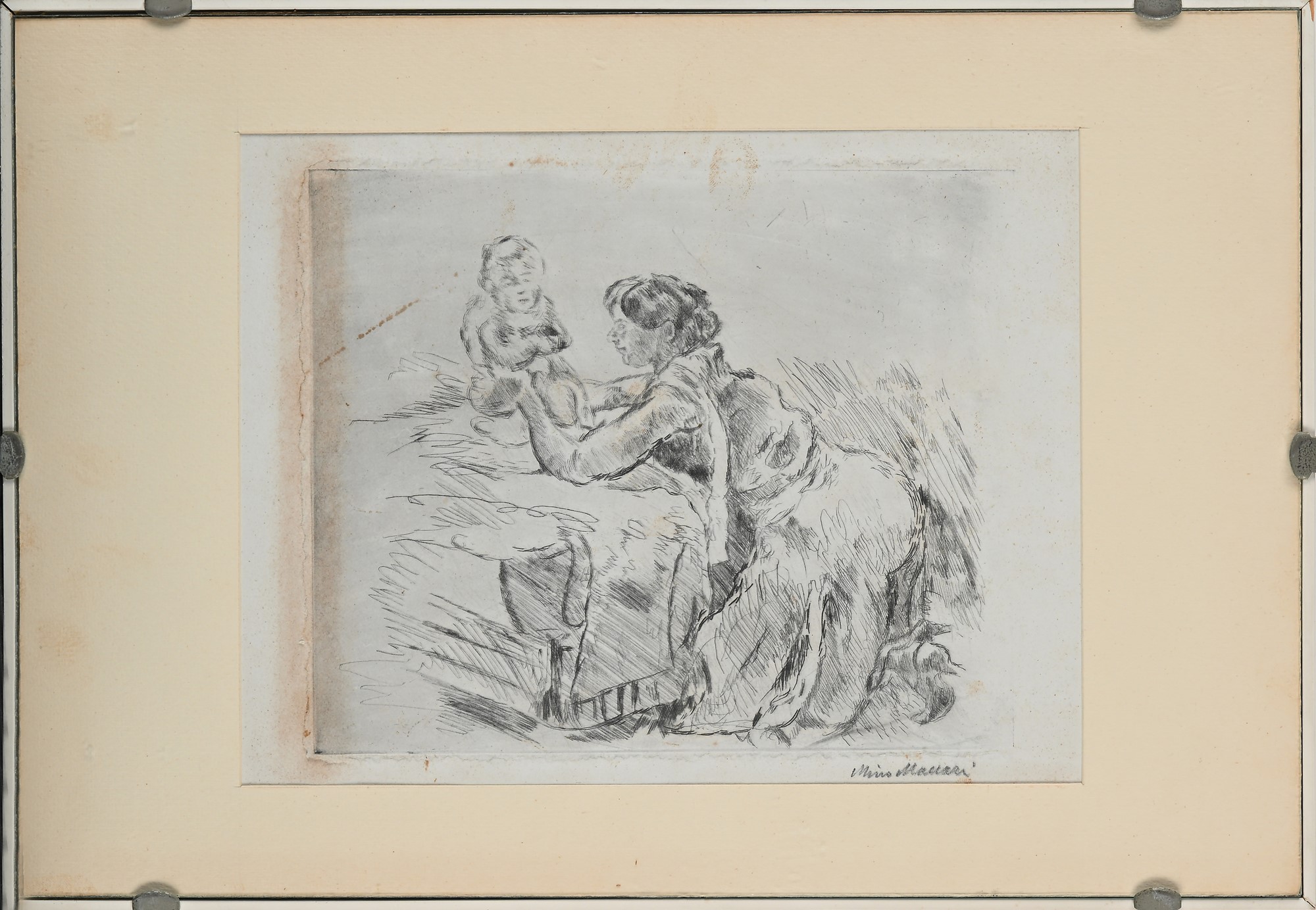 2) Figura di donna con bambino, Puntasecca, lastra cm 18x22 - in cornice cm 28x41. Firma "Mino Maccari".