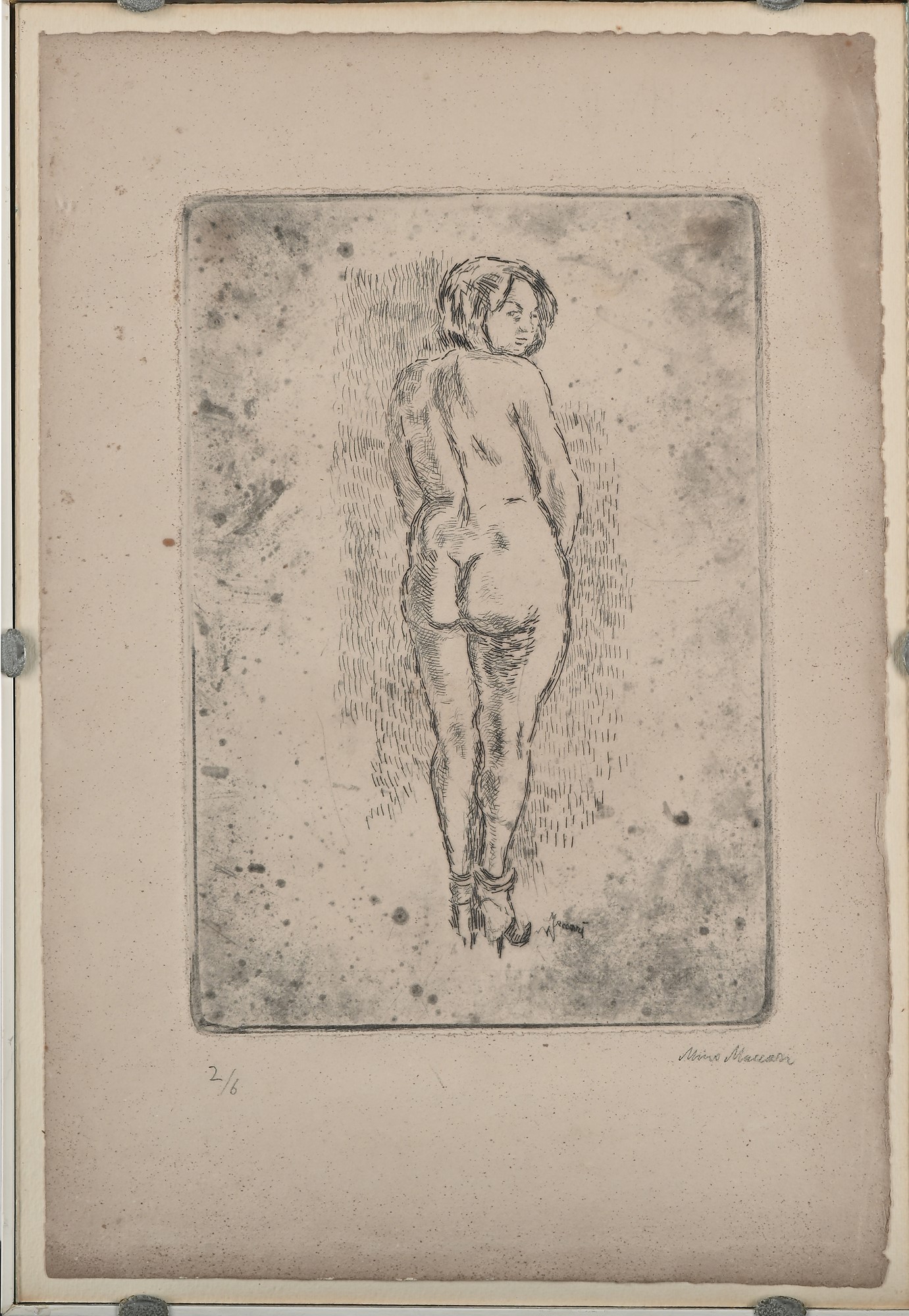 1) Nudo di donna in piedi, Acquaforte, cm 38x25,5 - in cornice cm 41x28. Firma e numerazione "Mino Maccari 2/6".