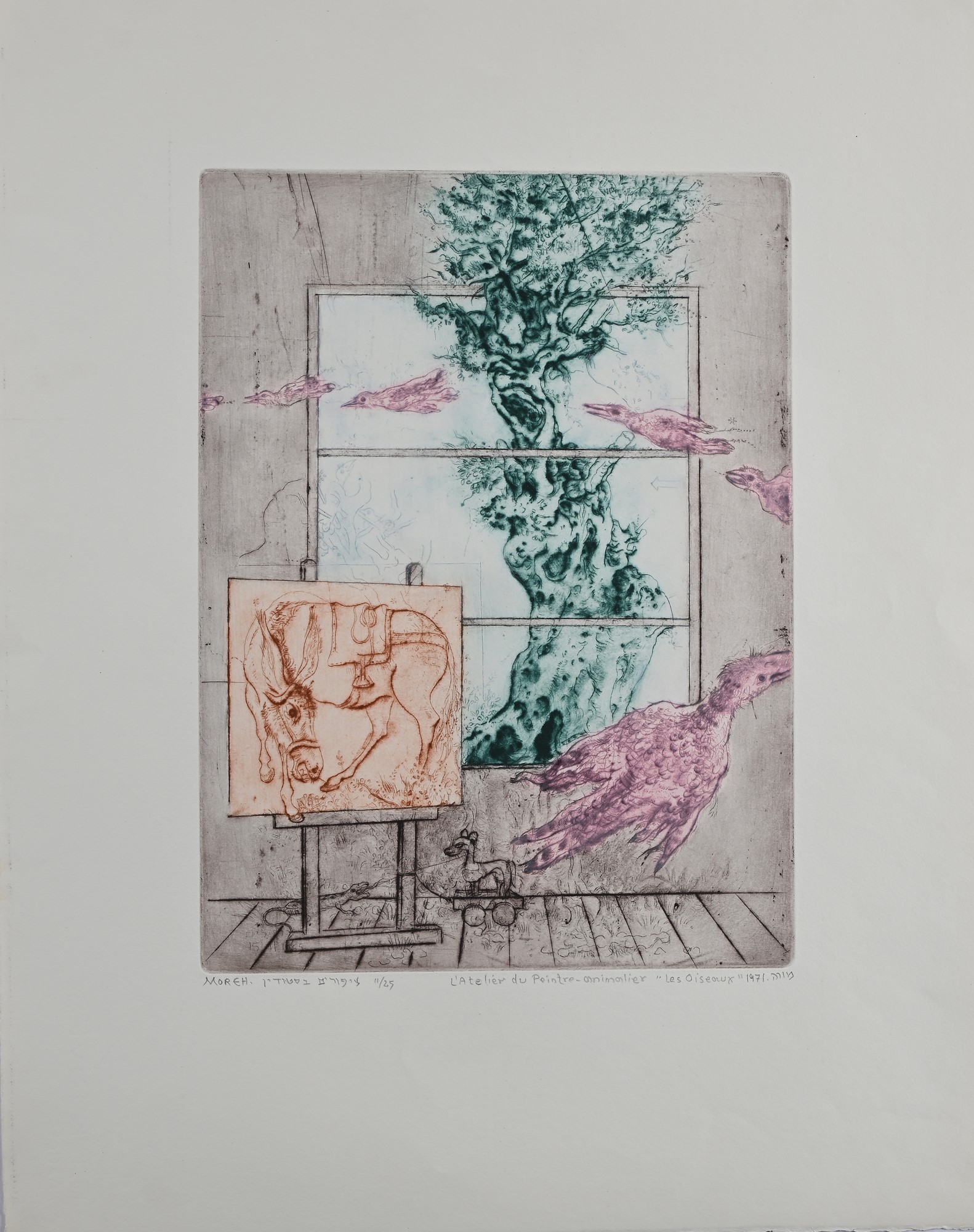 D)L'atelier du Peintre-Animalier Les Oiseaux, 1971, acquaforte/acquatinta, cm 55x45. Firma e numerazione Moreh 11/25.