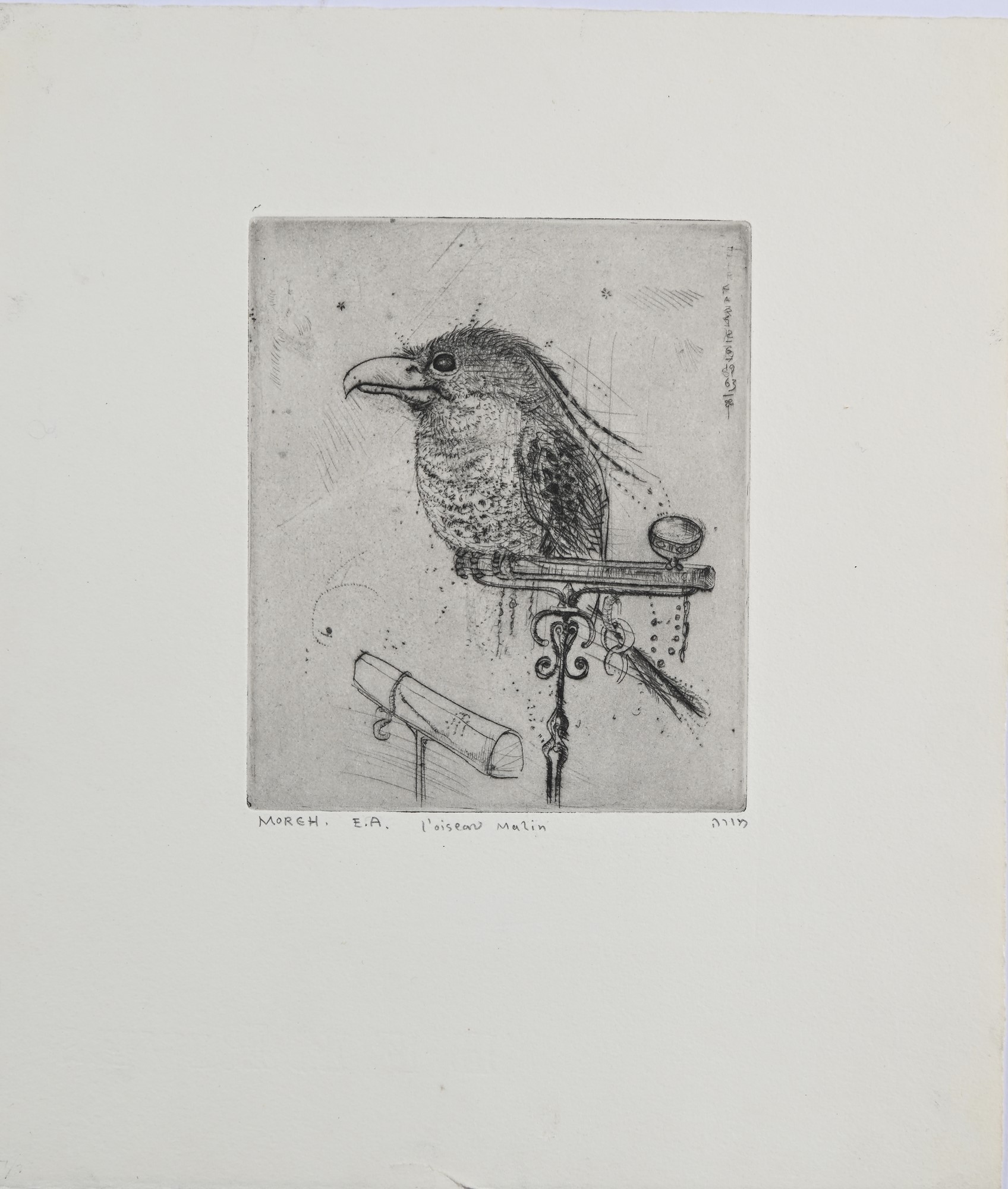 B) L'oiseau Marin, acquaforte, cm 30x25, firma e numerazione "Moreh E.A."