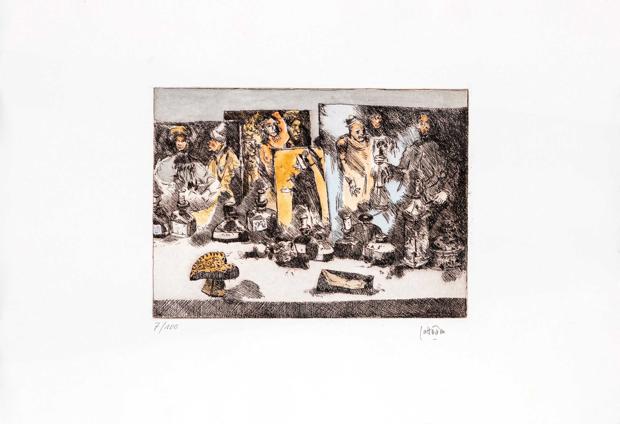 Senza titolo Acquaforte acquarellata cm 35x50 Firma e numerazione "Cattaneo 7/100"