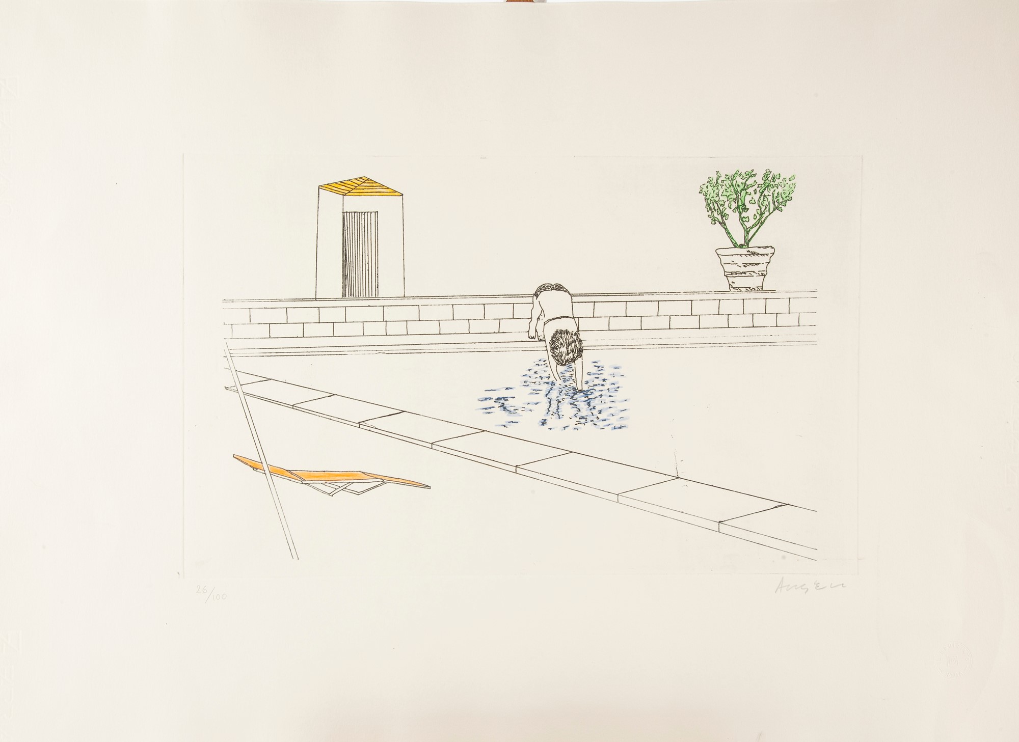 Senza titolo Acquaforte ritoccata a mano cm 50x70 Firma e numerazione "Angeli 26/100". Timbro a secco in basso a sinistra "Il Labirinto, Roma".