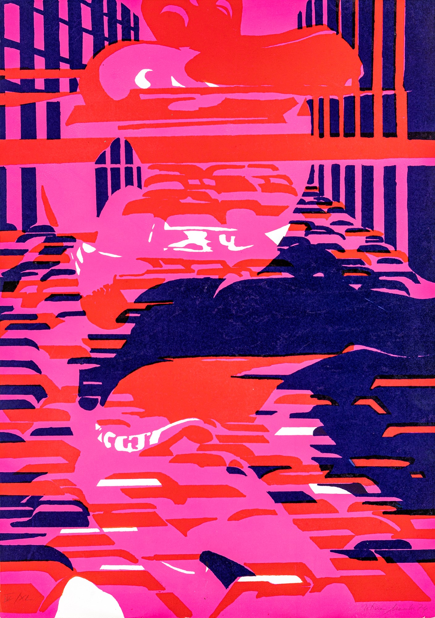 Senza titolo 1974 Litografia cm 71x50 Firma data e numerazione "Titina Maselli '74, IV/XL". Timbro a secco dello stampatore.