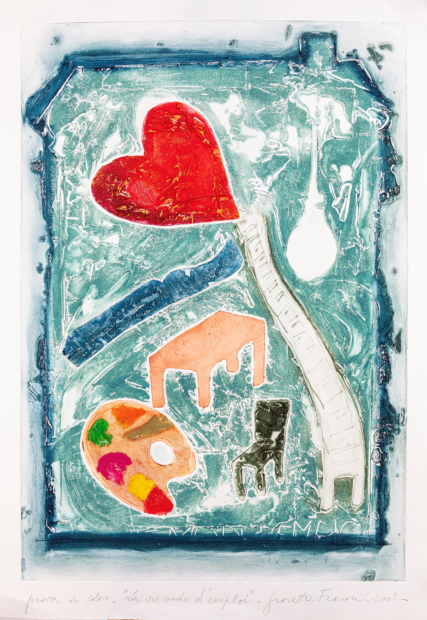 La Vie Norde d'Employ 2001 Acquaforte/acquatinta cm 99x70 Firma, data, titolo e numerazione "Giosetta Fioroni, 2001, prova di colore".