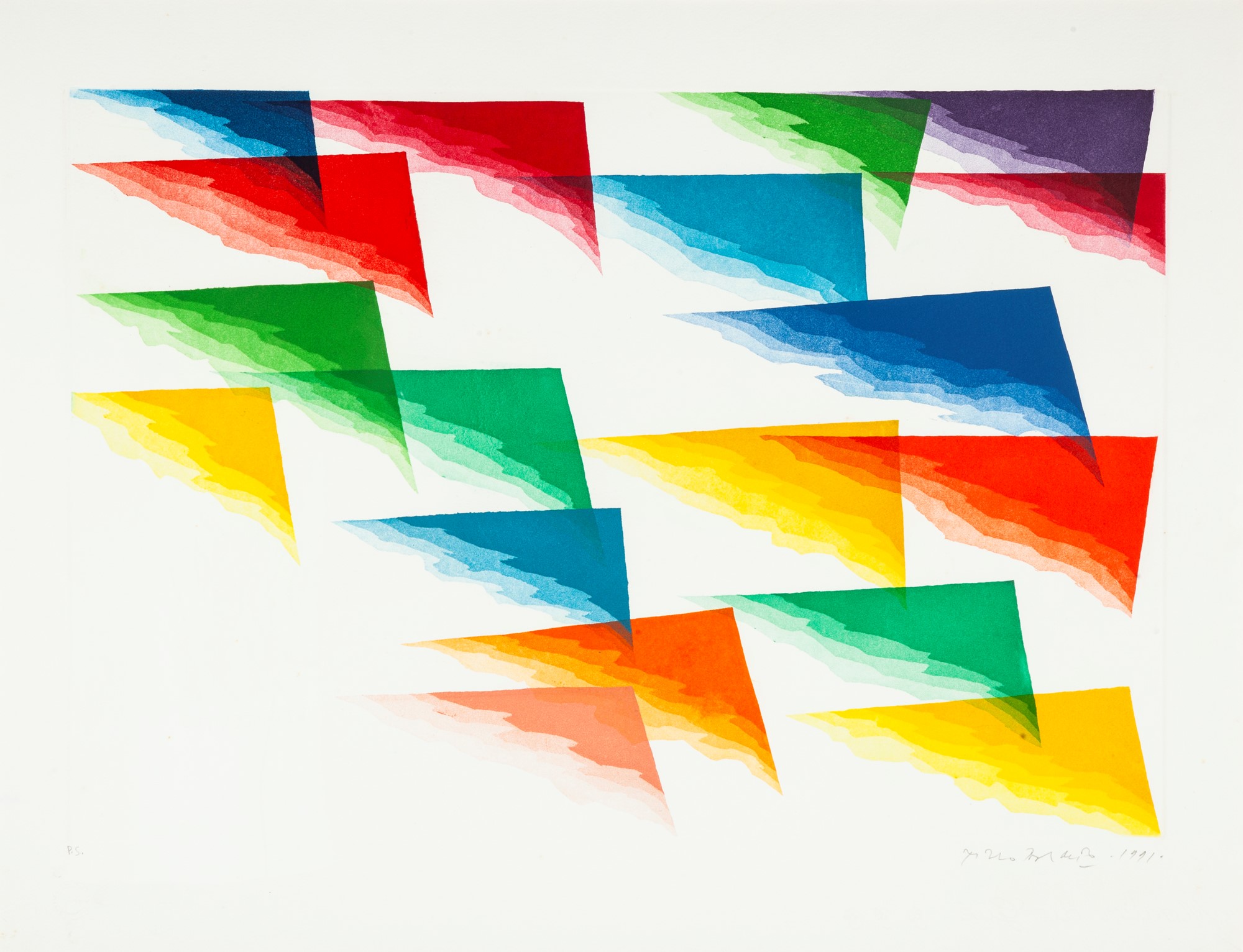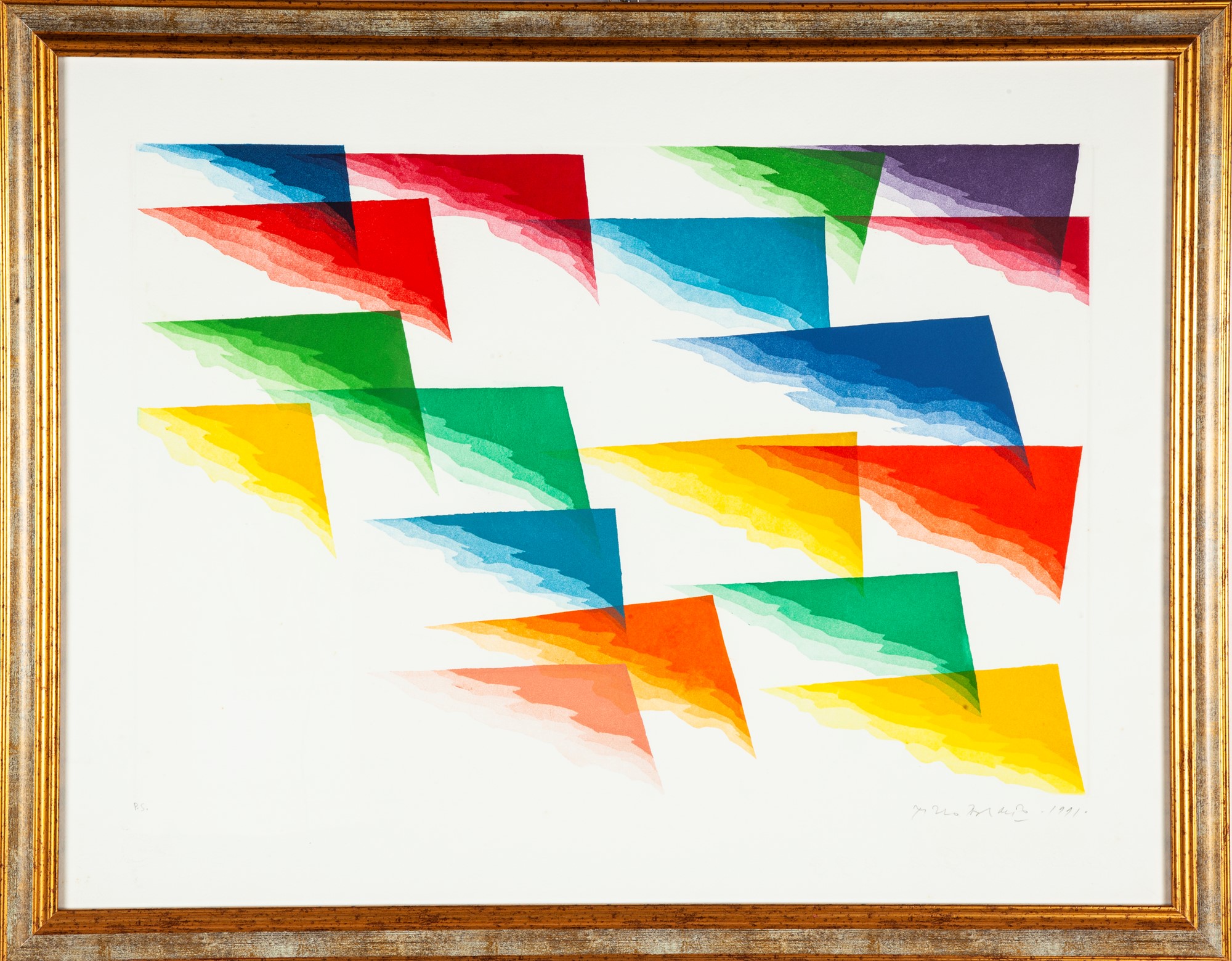 Senza titolo 1990 Acquatinta cm 58x76 - in cornice cm 65x83 Firma e numerazione "Piero Dorazio 1991, P.s." Timbro a secco in basso a sinistra Grafica d'arte Lombardi, Roma. Al verso timbro della Grafica d'arte Lombardi Roma