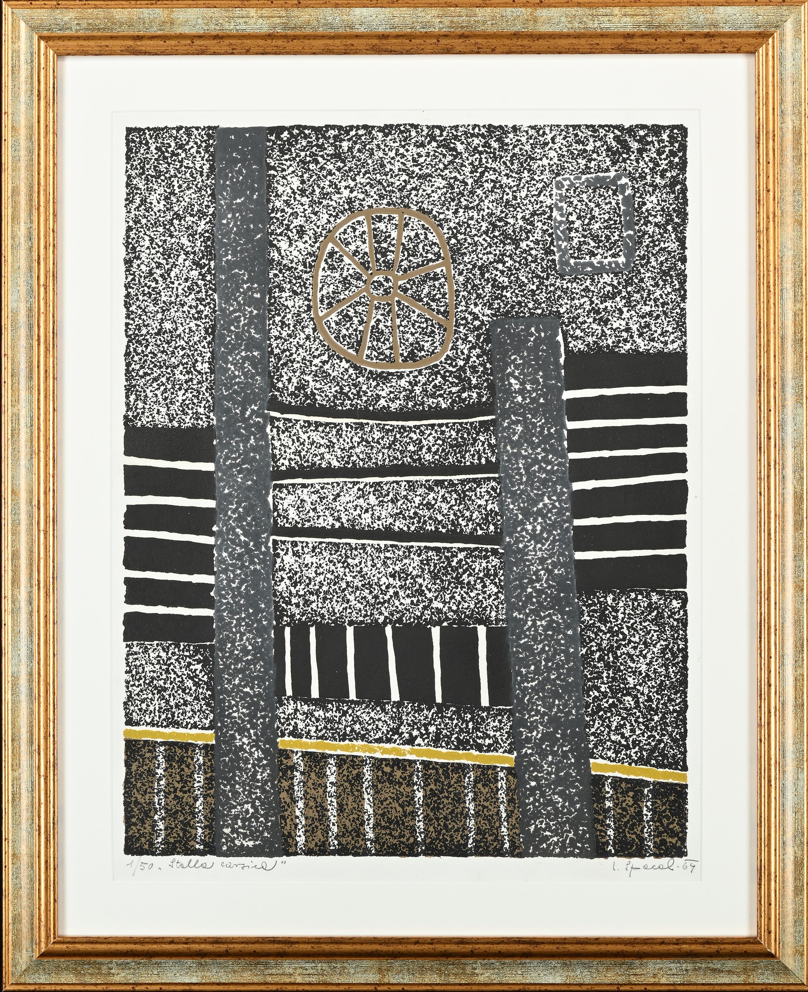 Stalla carsica 1964 litografia cm 60x50 - in cornice cm 71x58 Firma, data, titolo e numerazione "L. Spacal '64, 1/50, Stalla Carsica"