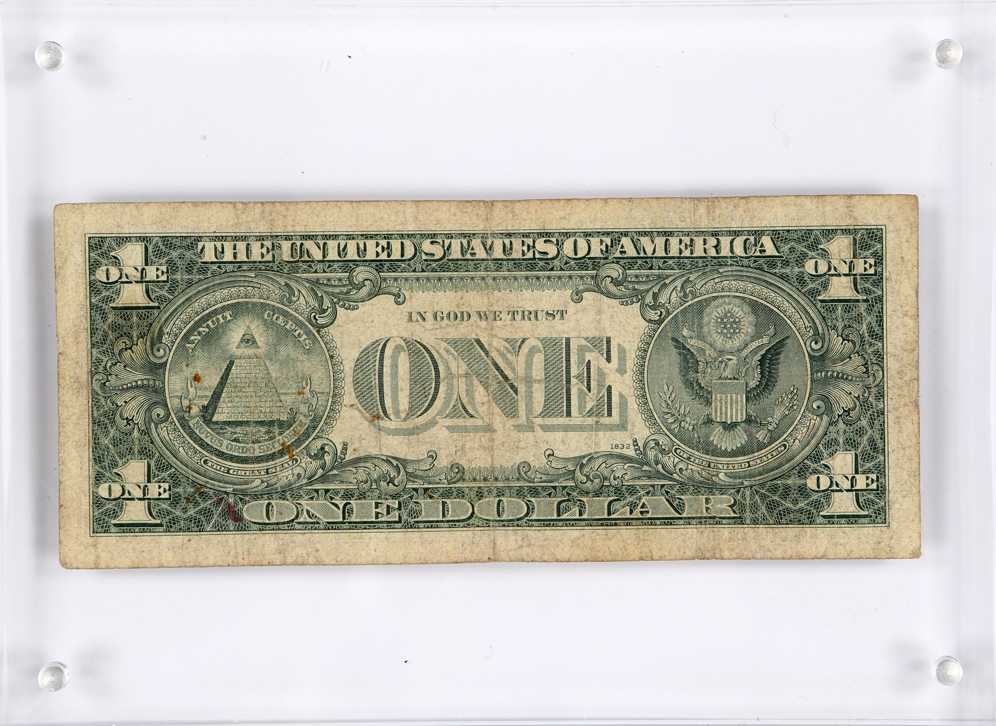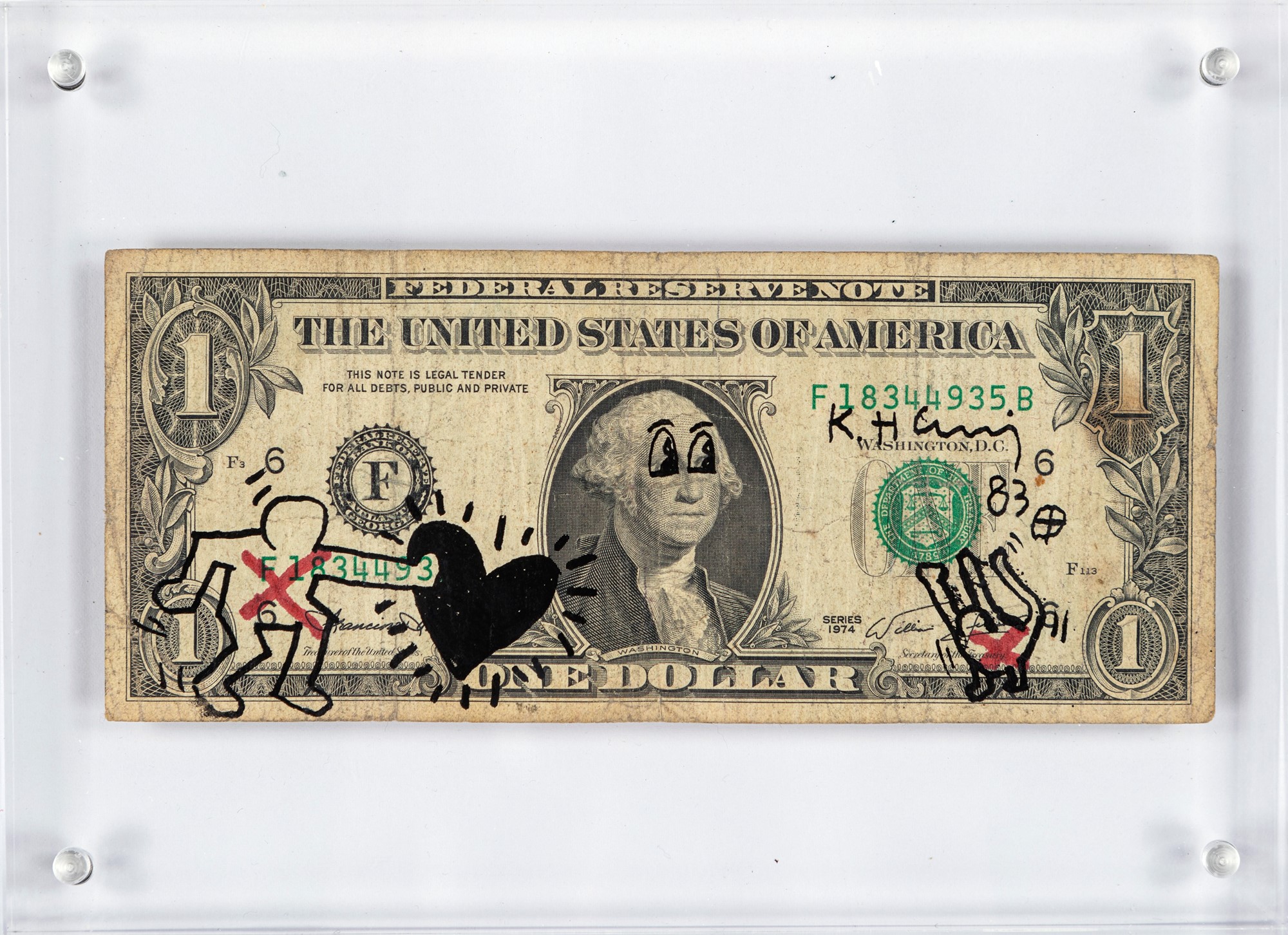 One Dollar 1983 Pennarelli su dollaro cm 6,5x15 - entro teca di plexiglass cm 13x18 Firma e data K.Haring '83