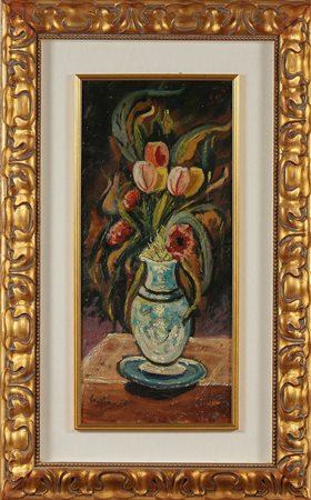 COSTANZA LORENZO (n. 1952) Vaso di fiori. 1996. Olio su faesite. Cm 30,00 x...