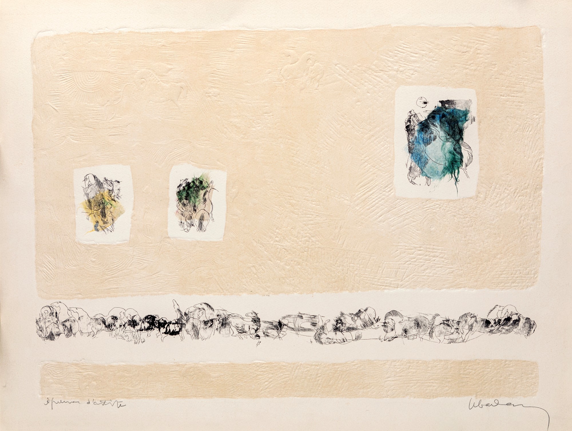 e) Senza titolo, litografia, cm 60x43. Firma e numerazione in basso a destra "lebadang EA"