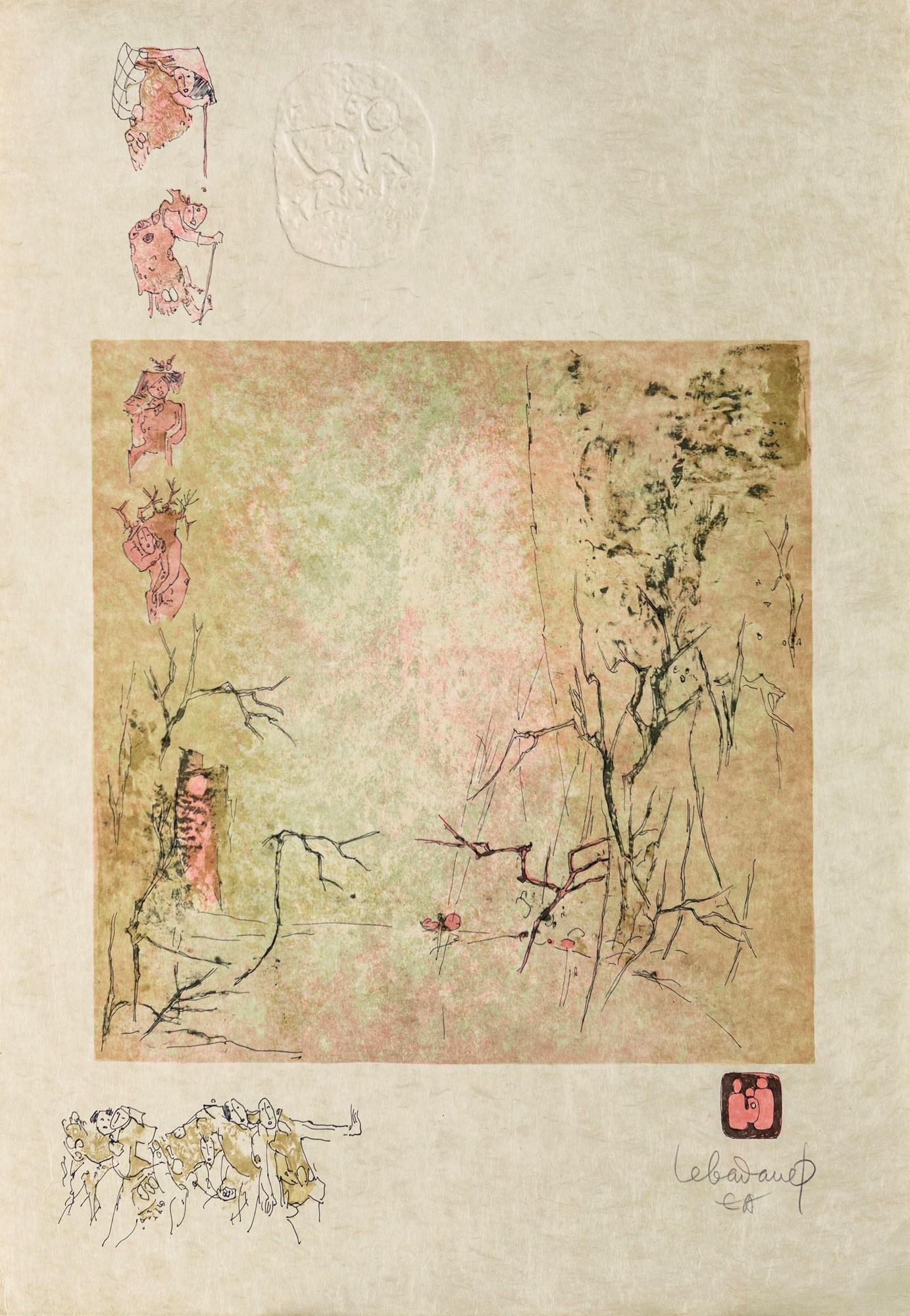 d) Senza titolo, calcografia, cm78x58, firma, dedica e numerazione "Lebadang, a Giovannella et Daniele Sette, Amiteé, Lebadang 5/81"