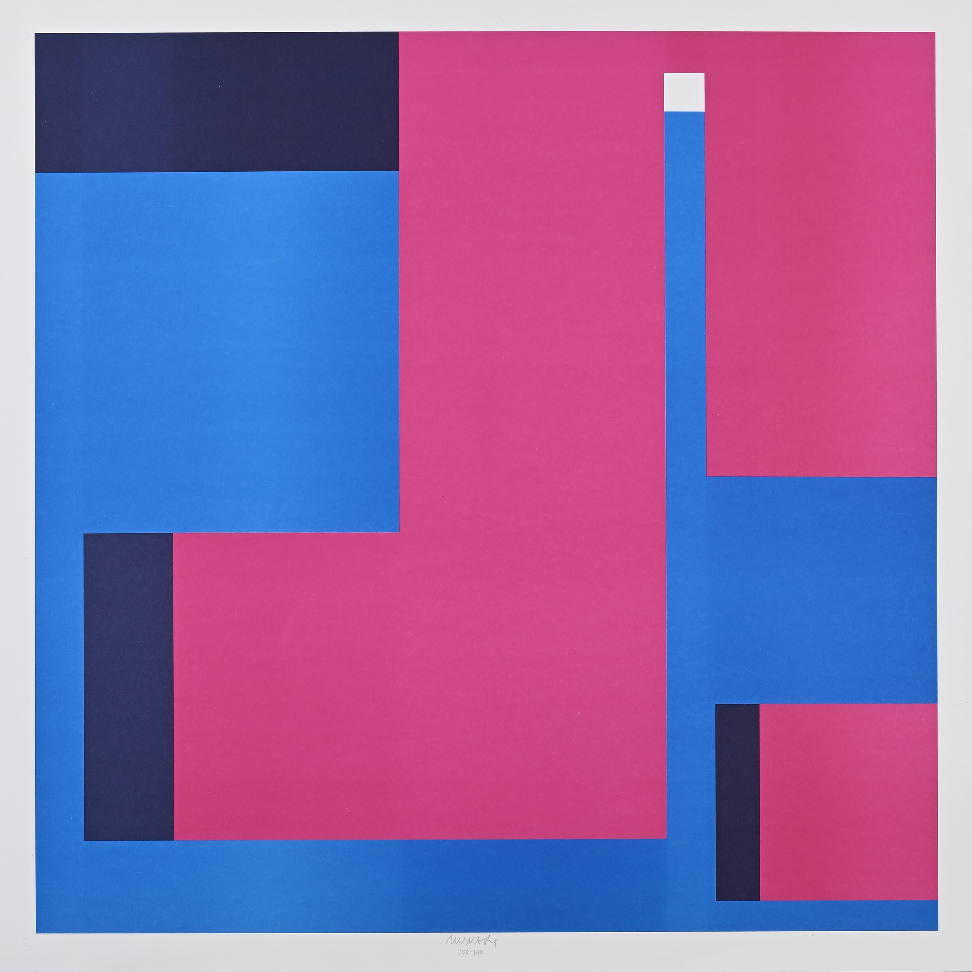 Negativo-Positivo Litografia cm 70x70 Firma e numerazione "Munari 100/100". Timbro a secco dello stampatore. Al verso timbro della Grafica d'Arte Lombardi