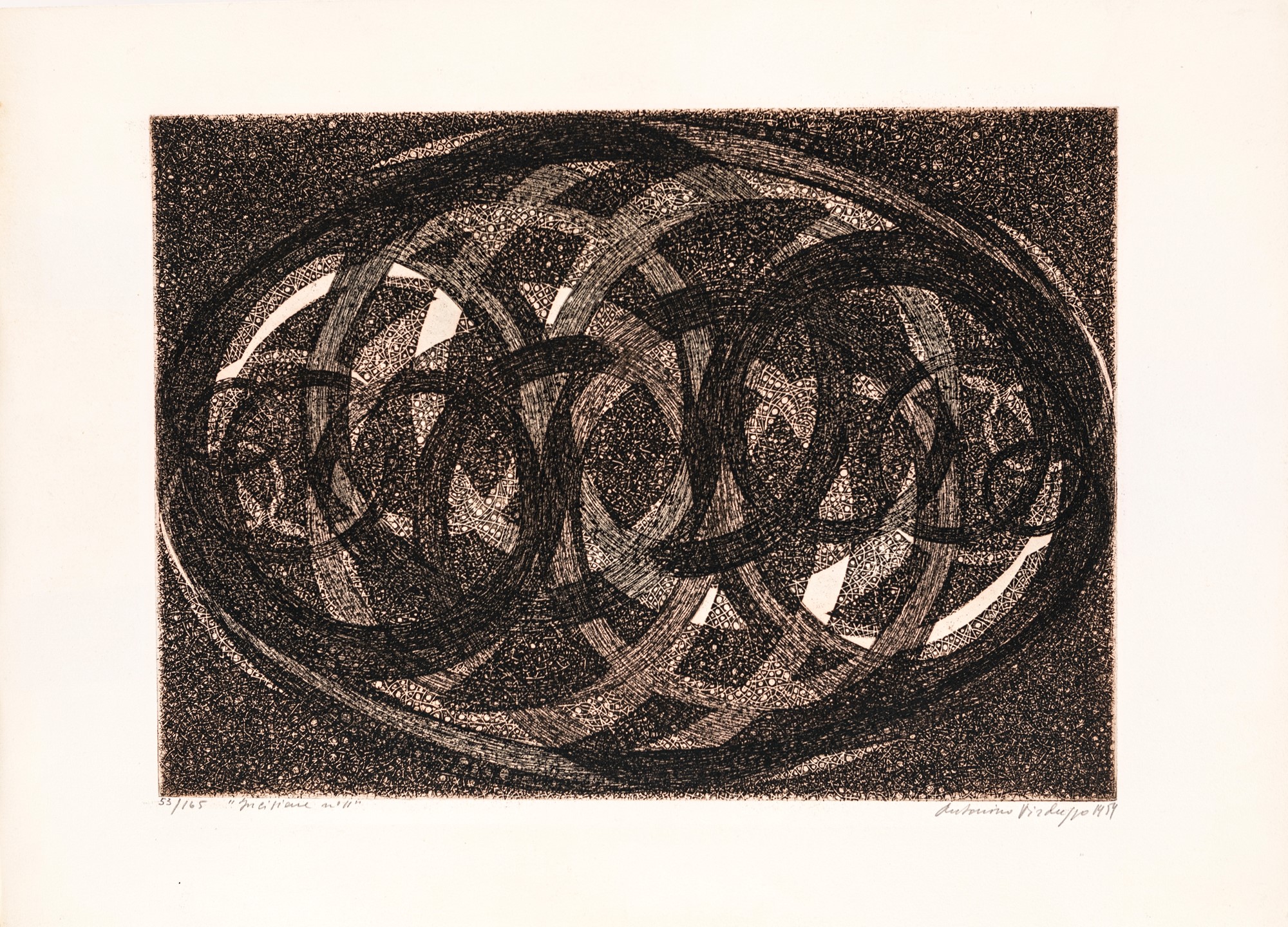 Senza titolo 1959 Acquaforte cm 48x65 Firma e numerazione "Virduzzo 53/165".