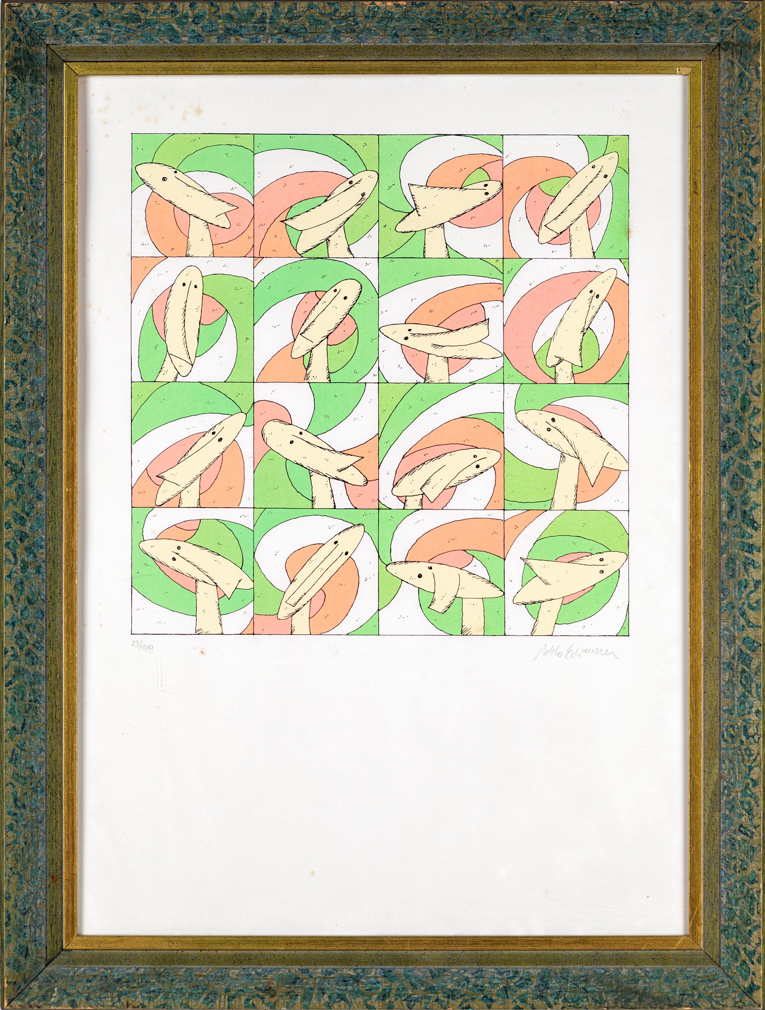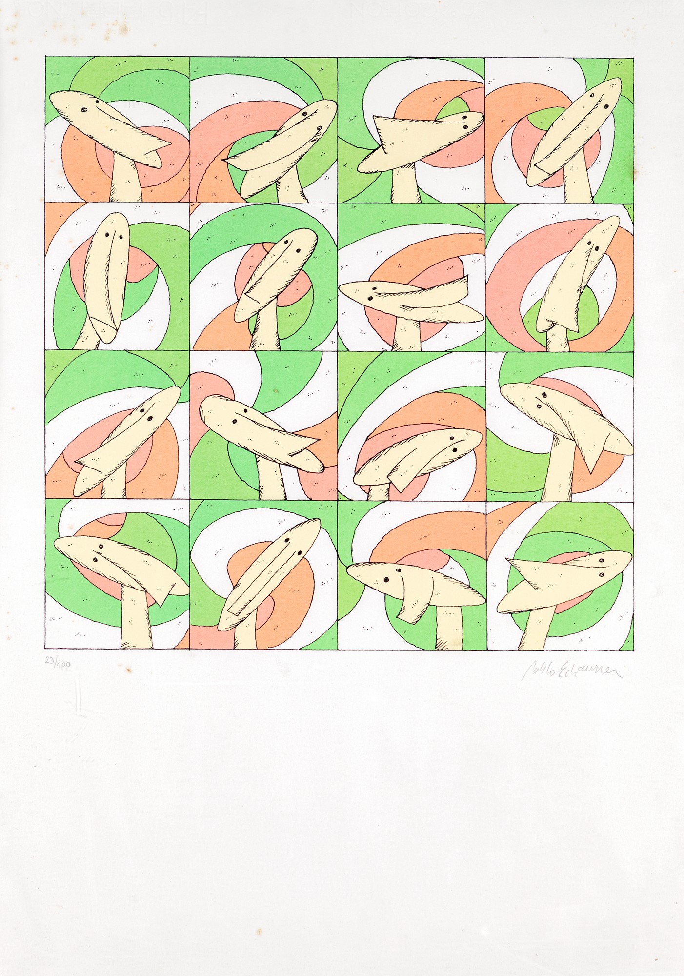 Senza titolo Litografia cm 70x50 - in cornice cm 81,5x62 Firma e numerazione "Pablo Echaurren 23/100". Al verso etichetta di Telemarket