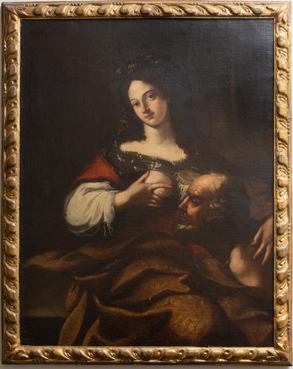 Maestro del XVII secolo, Carità romana. Cm. 118x91. Olio su tela.