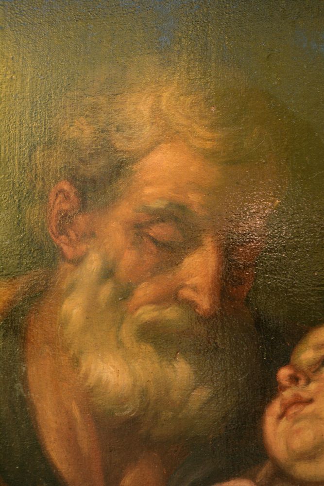 Ercole de Maria (San Giovanni in Persiceto prima metà del XVII secolo – 1640 ca.) San Giuseppe con il Bambino. Cm. 73x62. Olio su tela.