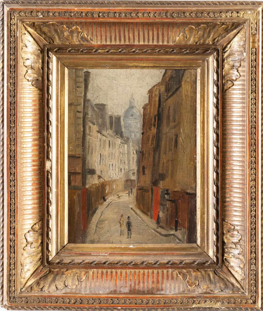 Pittore francese tra XIX e XX secolo. Rue Saint-Rustiche à Montmartre. Cm. 22x16. Olio su cartone telato.