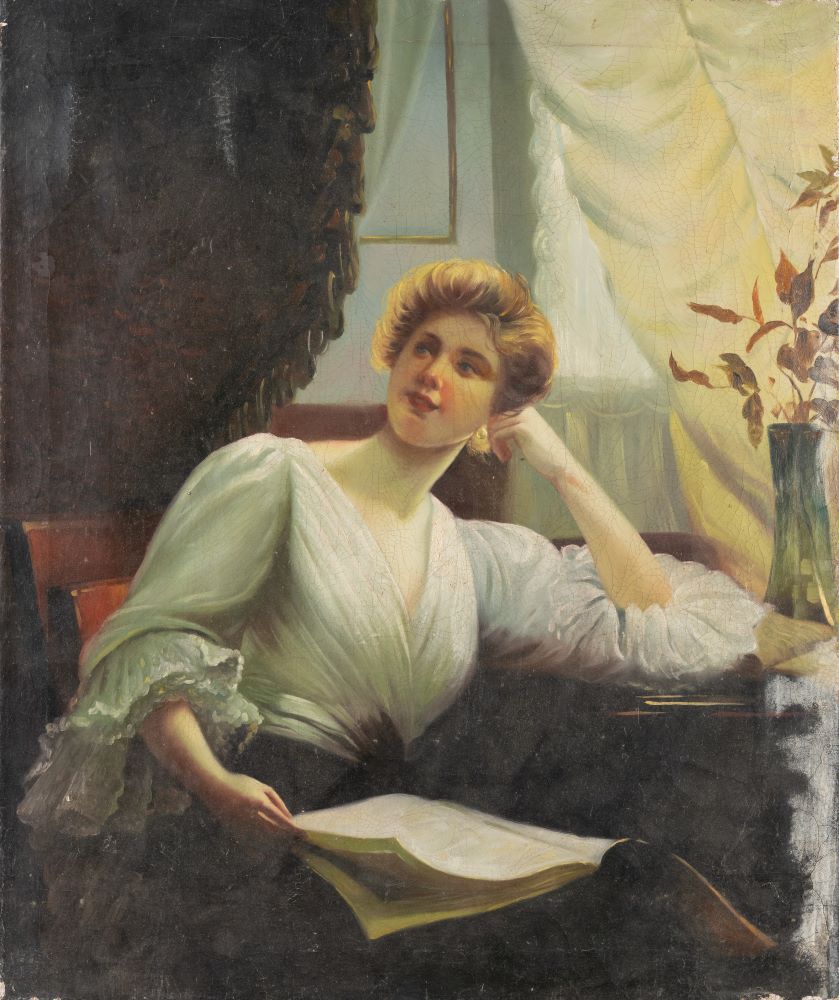 Lotto 82 | Pittore del XIX secolo. Ritratto di figura femminile seduta in un interno.