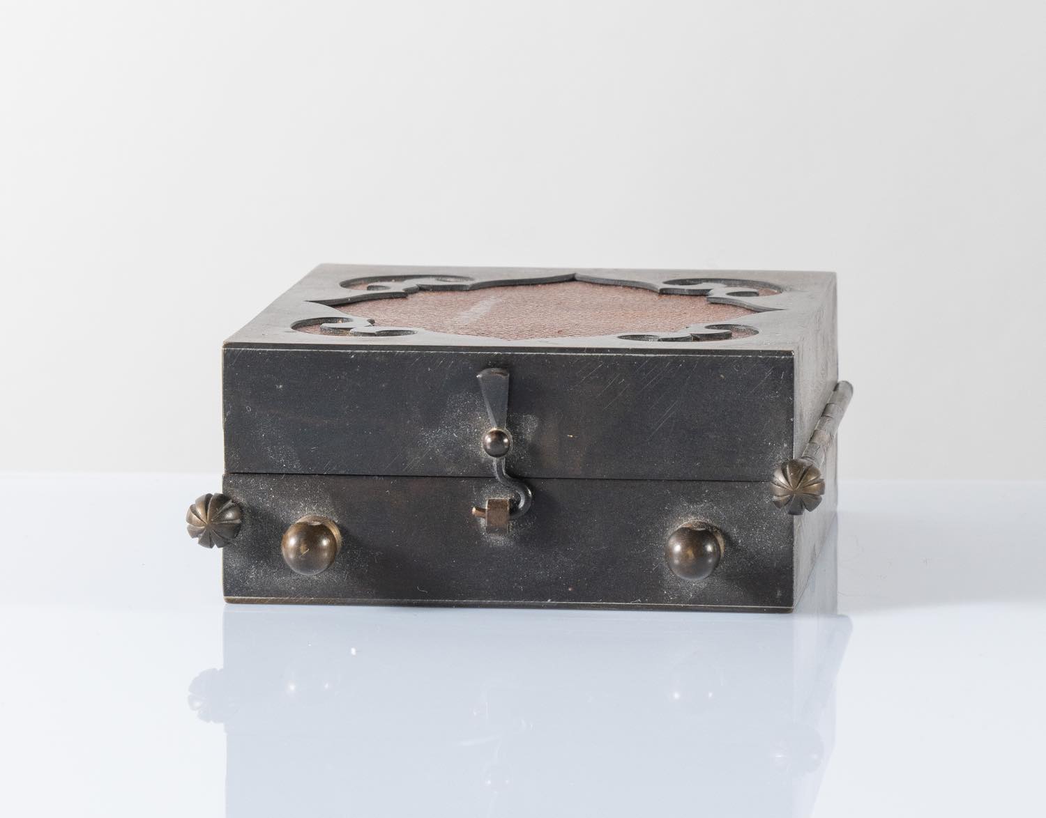 Icona richiudibile da viaggio, Arte ortodossa, inizi XIX secolo cm 10,5x9,3x4,4, apertura complessiva lunghezza cm 27,8 apertura in tre parti, con custodia in bronzo. All'interno raffigurazione di tre santi