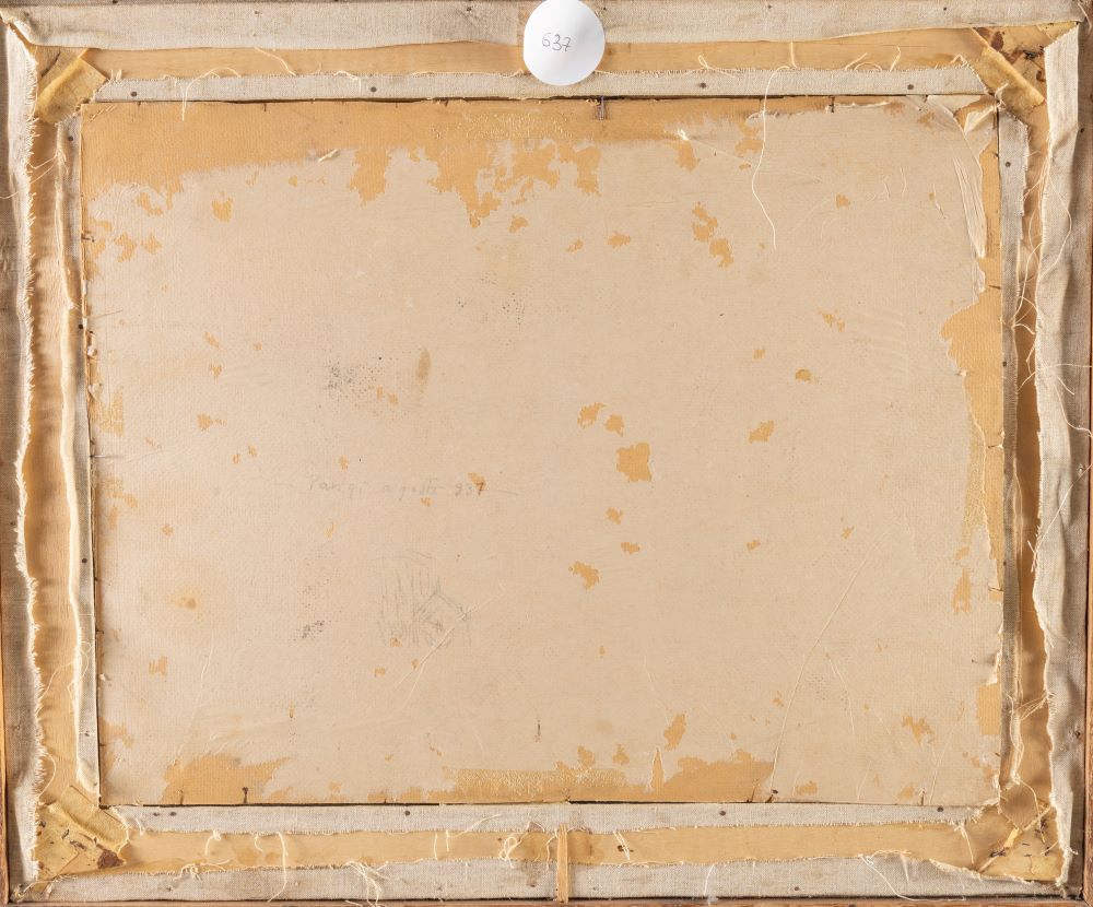 Olio su tela applicata su cartone. Firmato in basso a destra Farina. Intitolato e datato al retro Parigi agosto 1937.