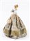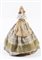 Bambola in ceramica, XX secolo cm 40x30 abiti in stoffa, ricami e merletto