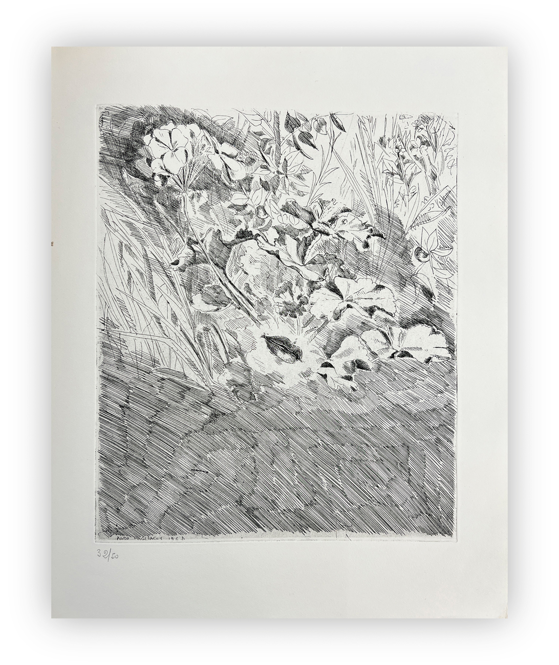 Edizione complessiva di 50 copie in numeri arabi, 7 copie ad personam e 15 copie fuori commercio, tutte realizzate su carta speciale a mano delle Cartiere Ventura di Milano (Esemplare 32 a matita sul colophon)